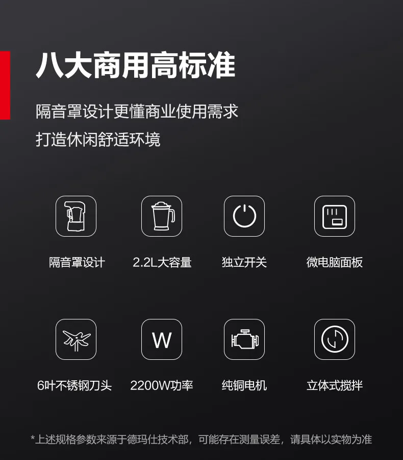 2.2L High Speed Blender Non-heating Low Noise Ice Sand Crusher Multifunctional Ice Machine Fully Automatic Juicer