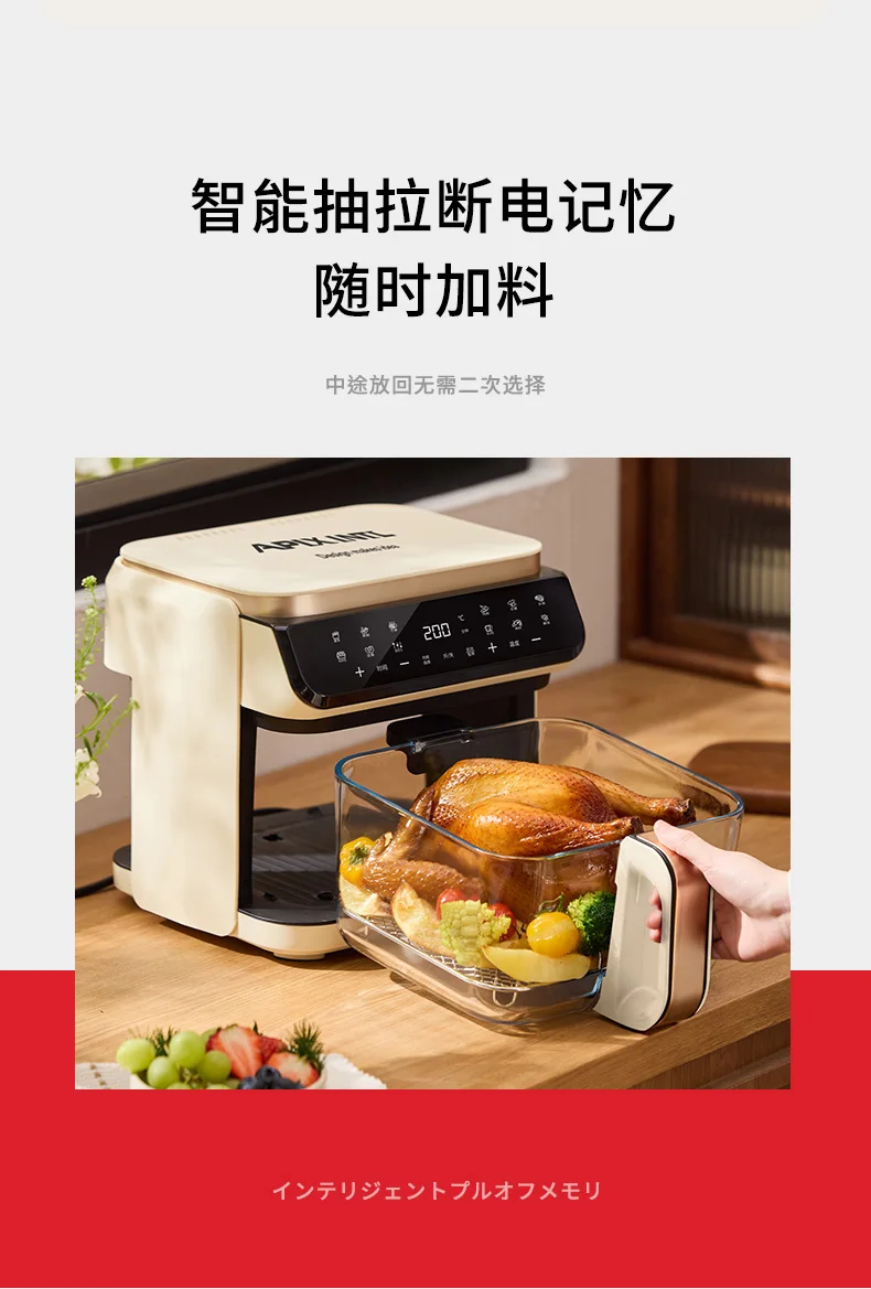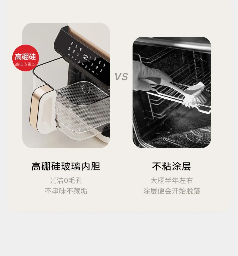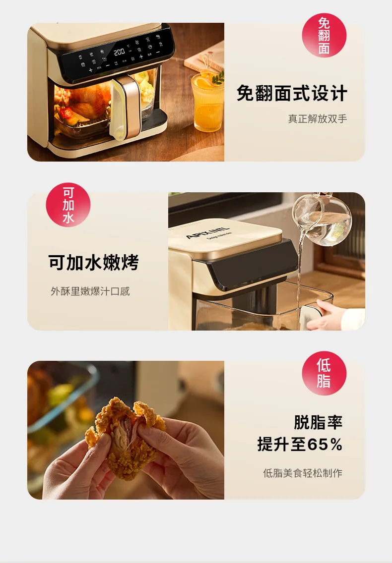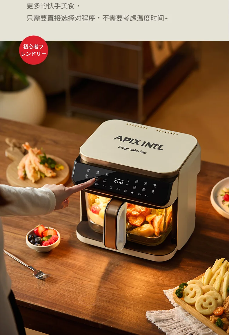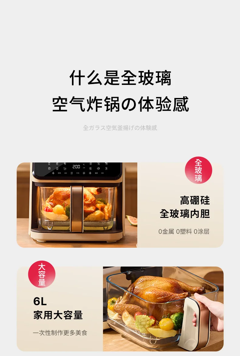 A 6L air fryer transparent visual household no-turn-over high boron glass liner water tender baking machine
