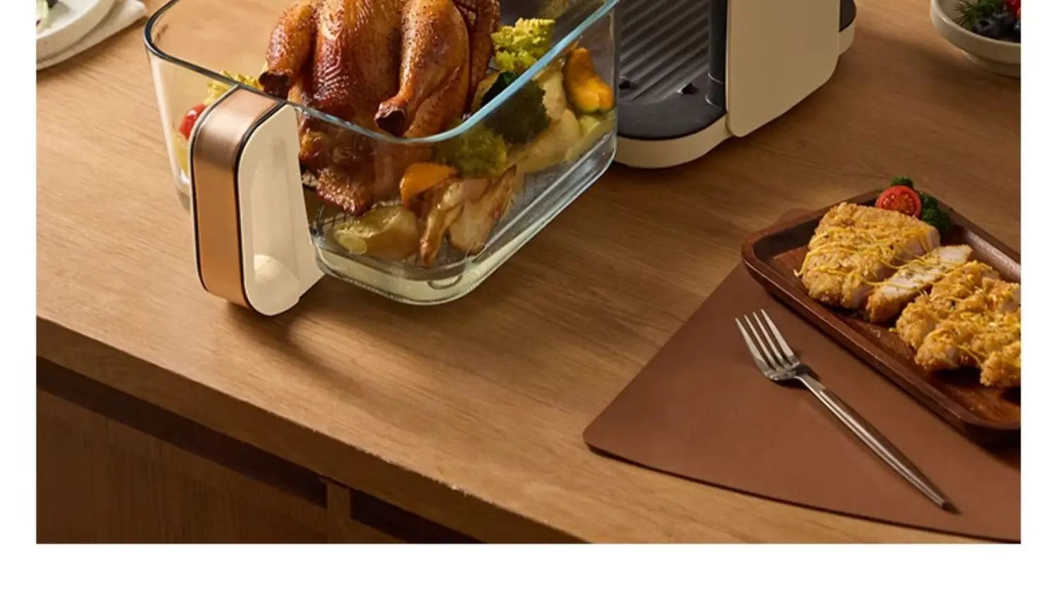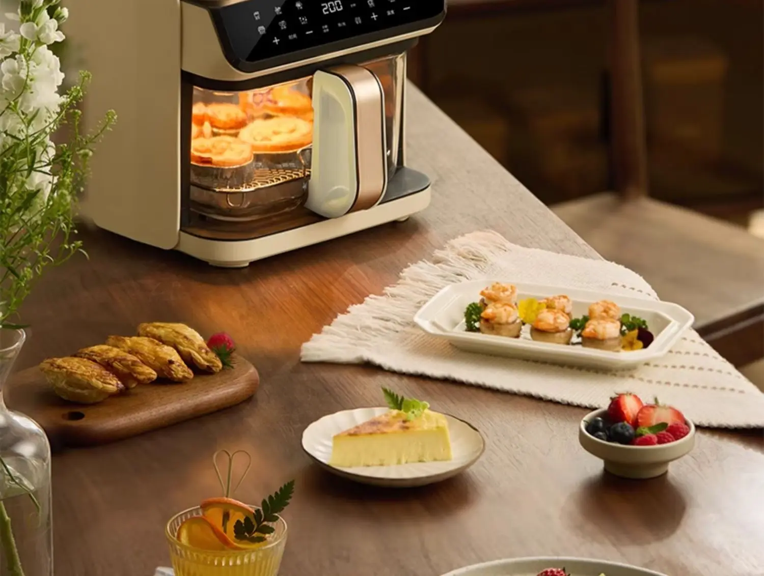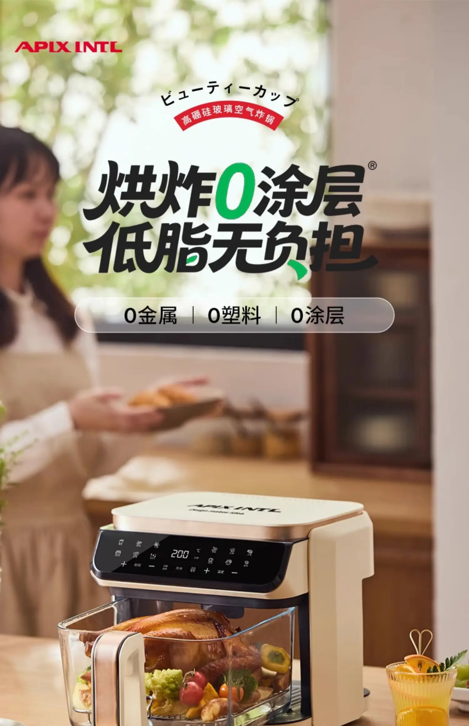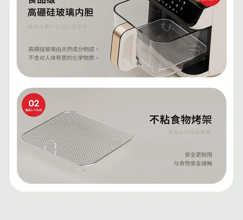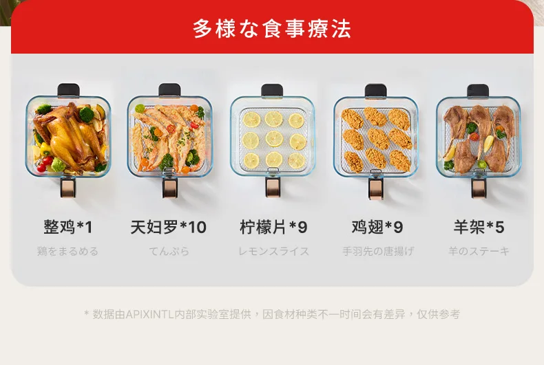 A 6L air fryer transparent visual household no-turn-over high boron glass liner water tender baking machine