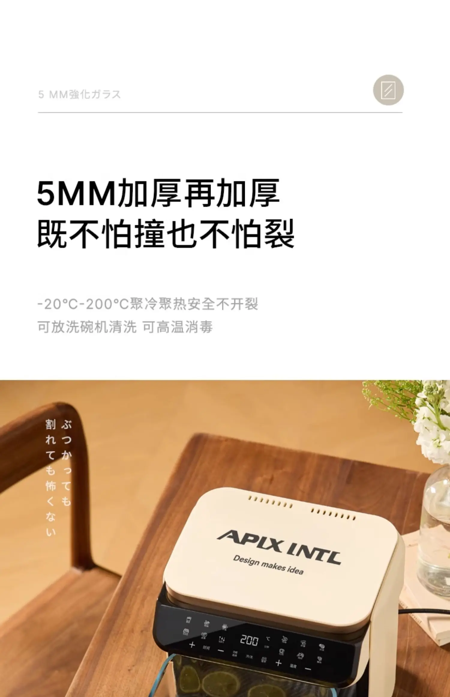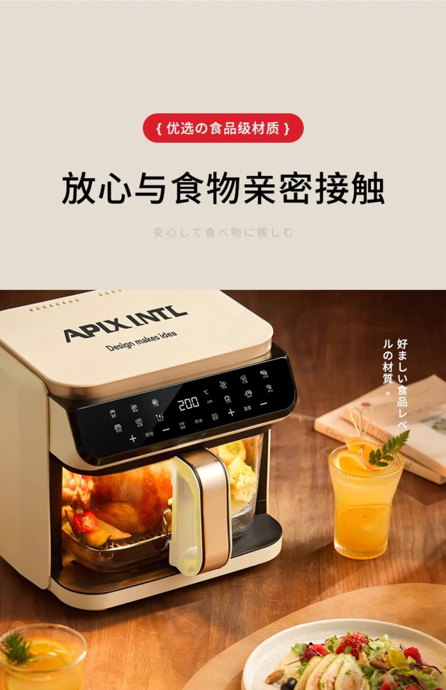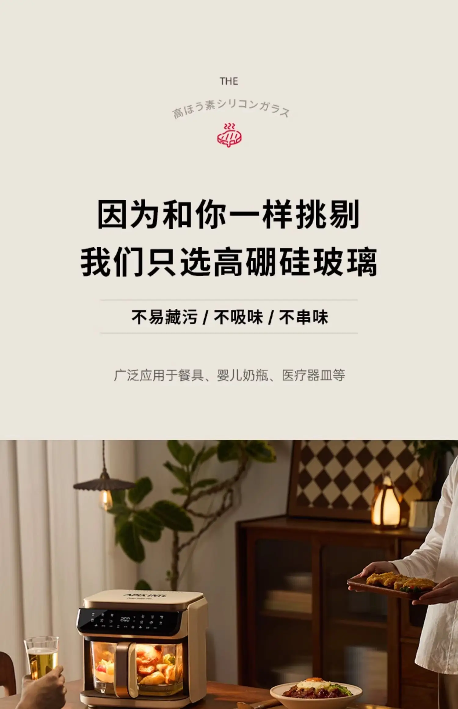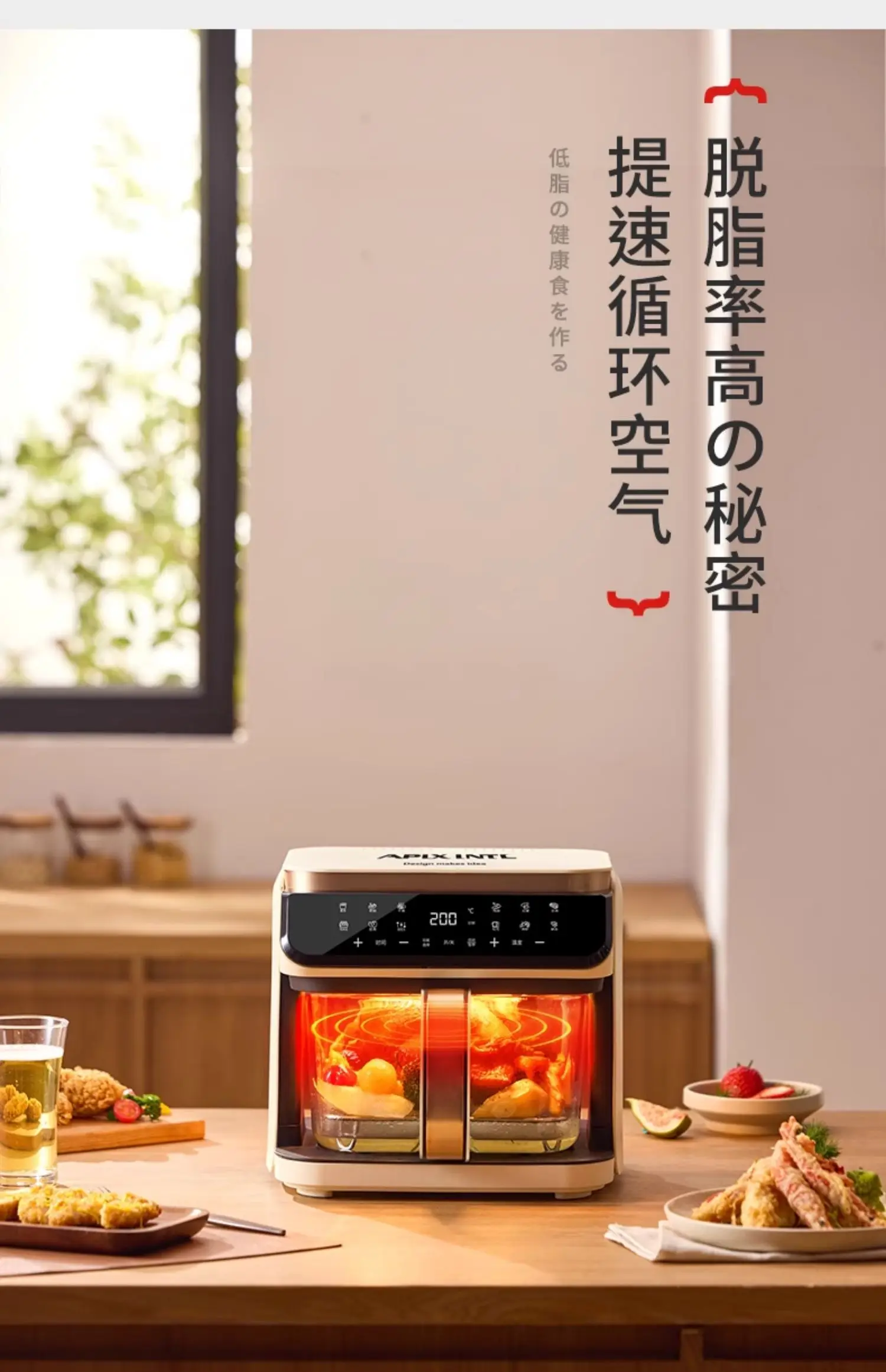 A 6L air fryer transparent visual household no-turn-over high boron glass liner water tender baking machine