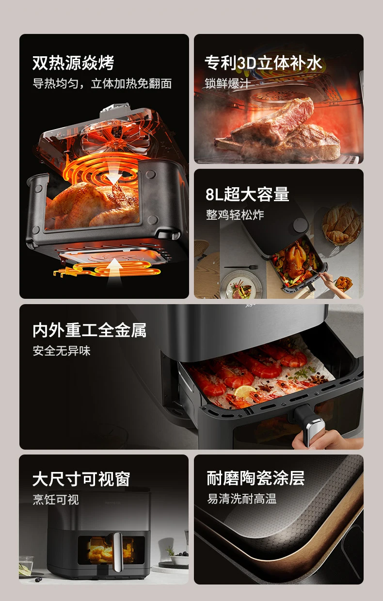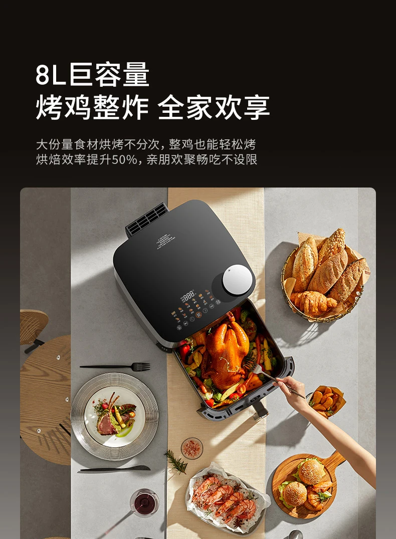 A air fryer new large-capacity household double heat source no-turning visual electric fryer electric oven cooking machine