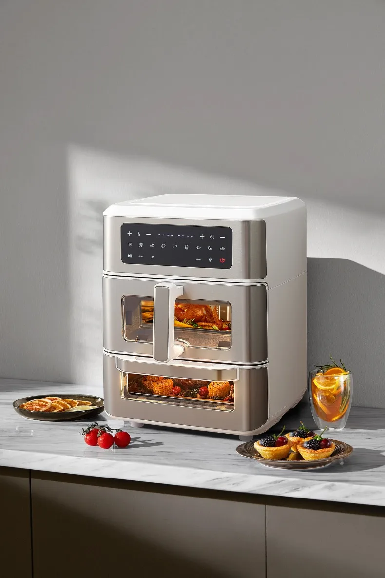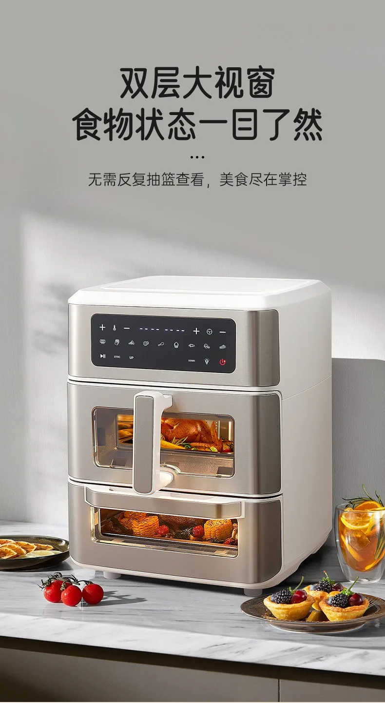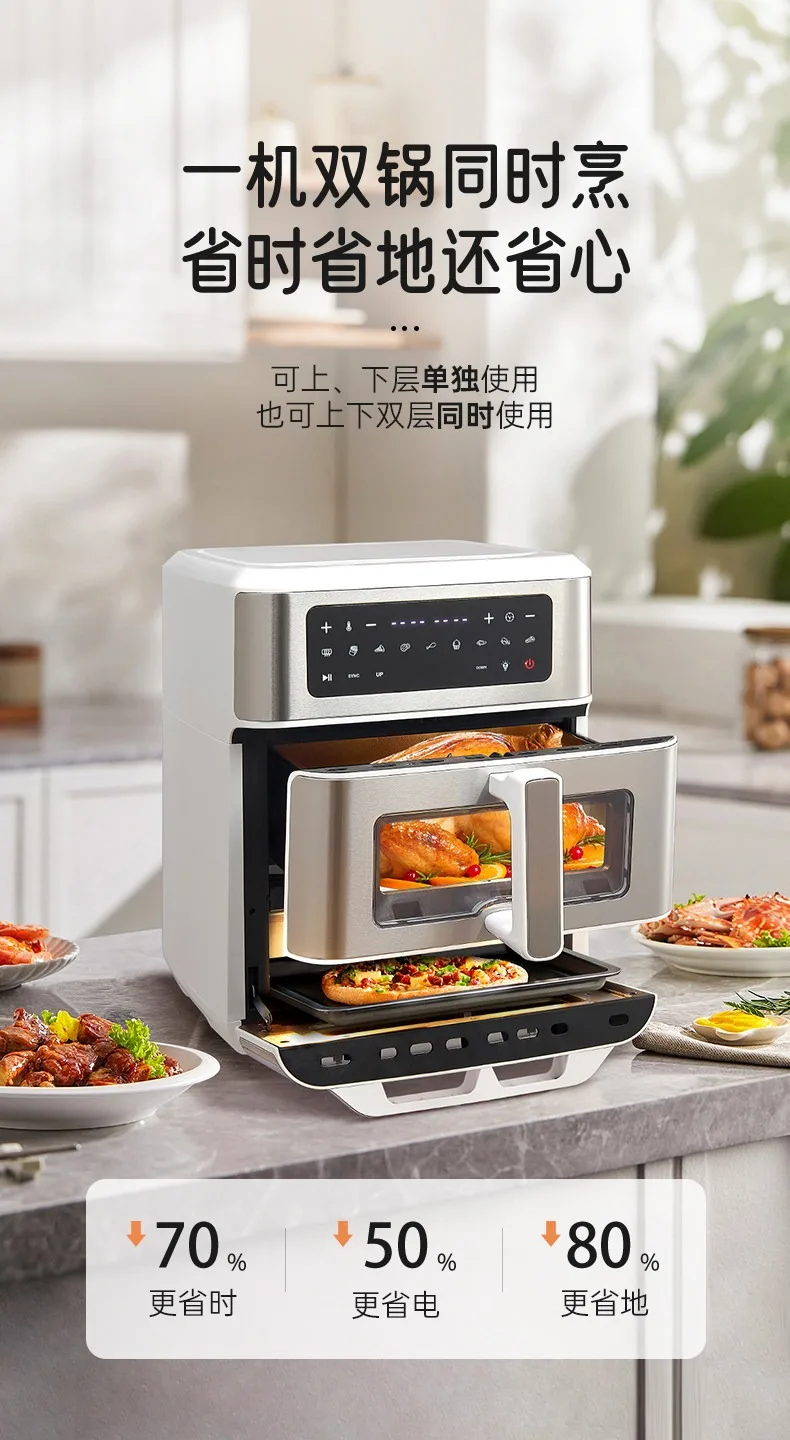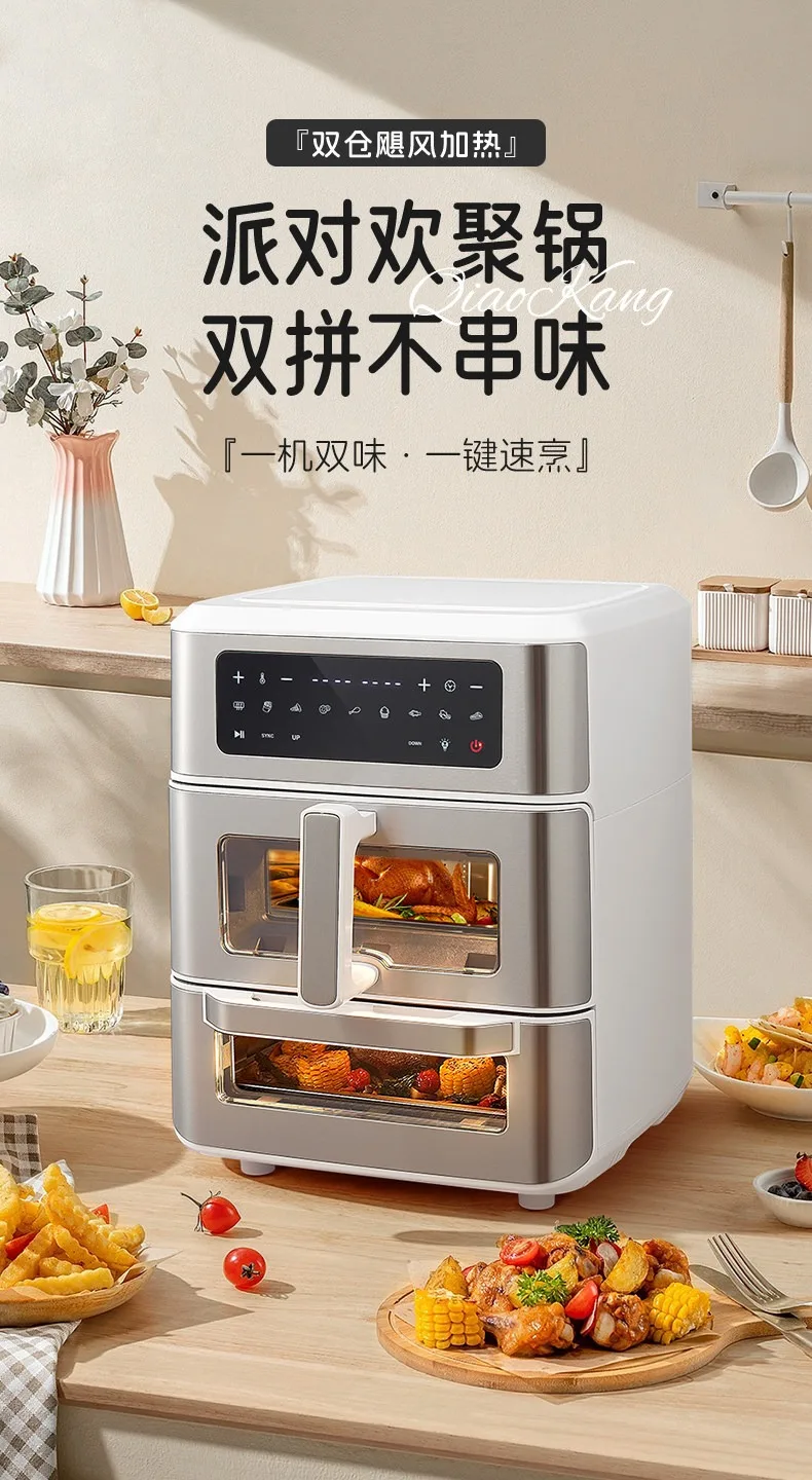 A Double-layer visual air fryer new three-dimensional double compartment multi-functional no-turning electric oven for home use