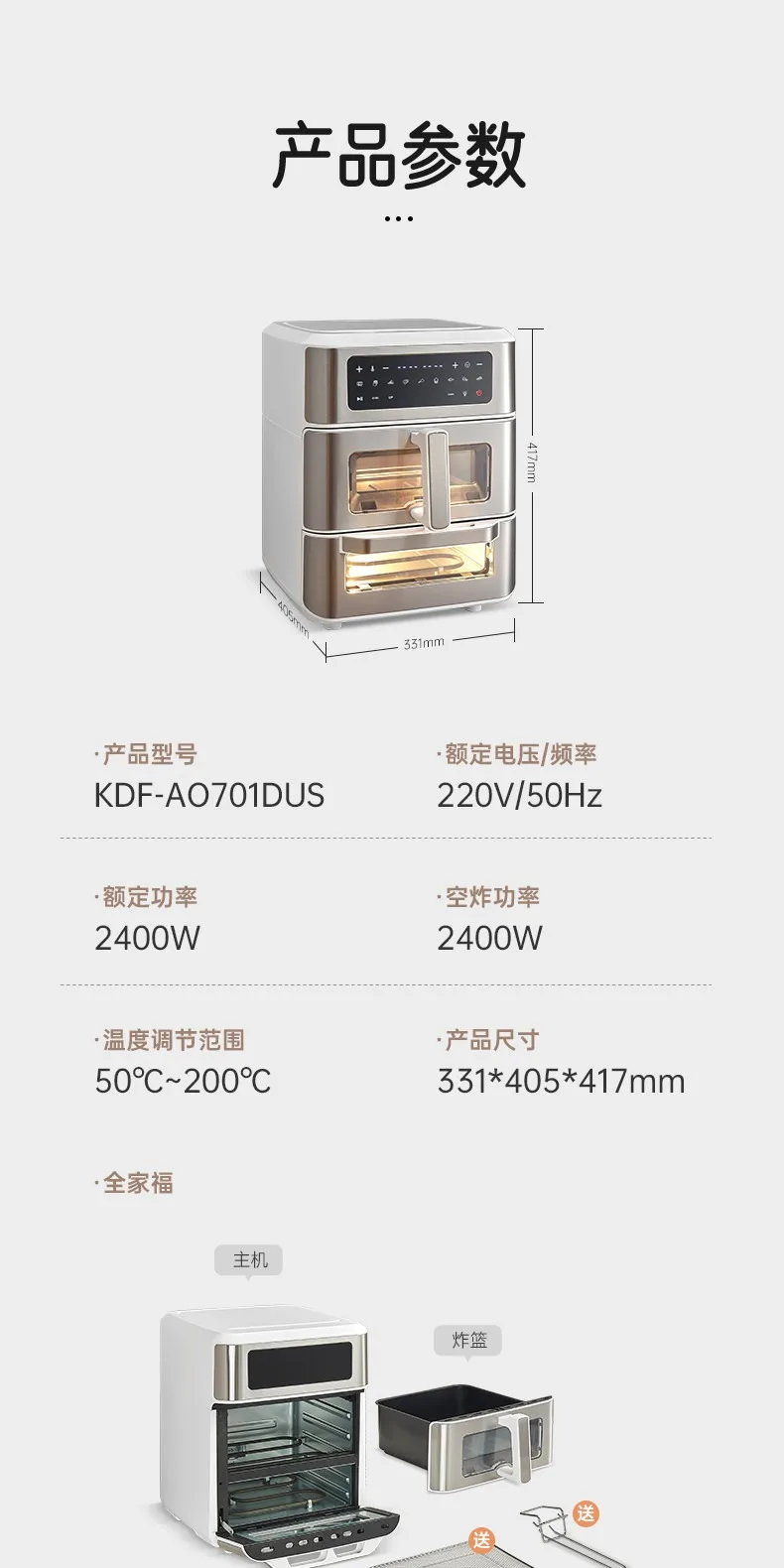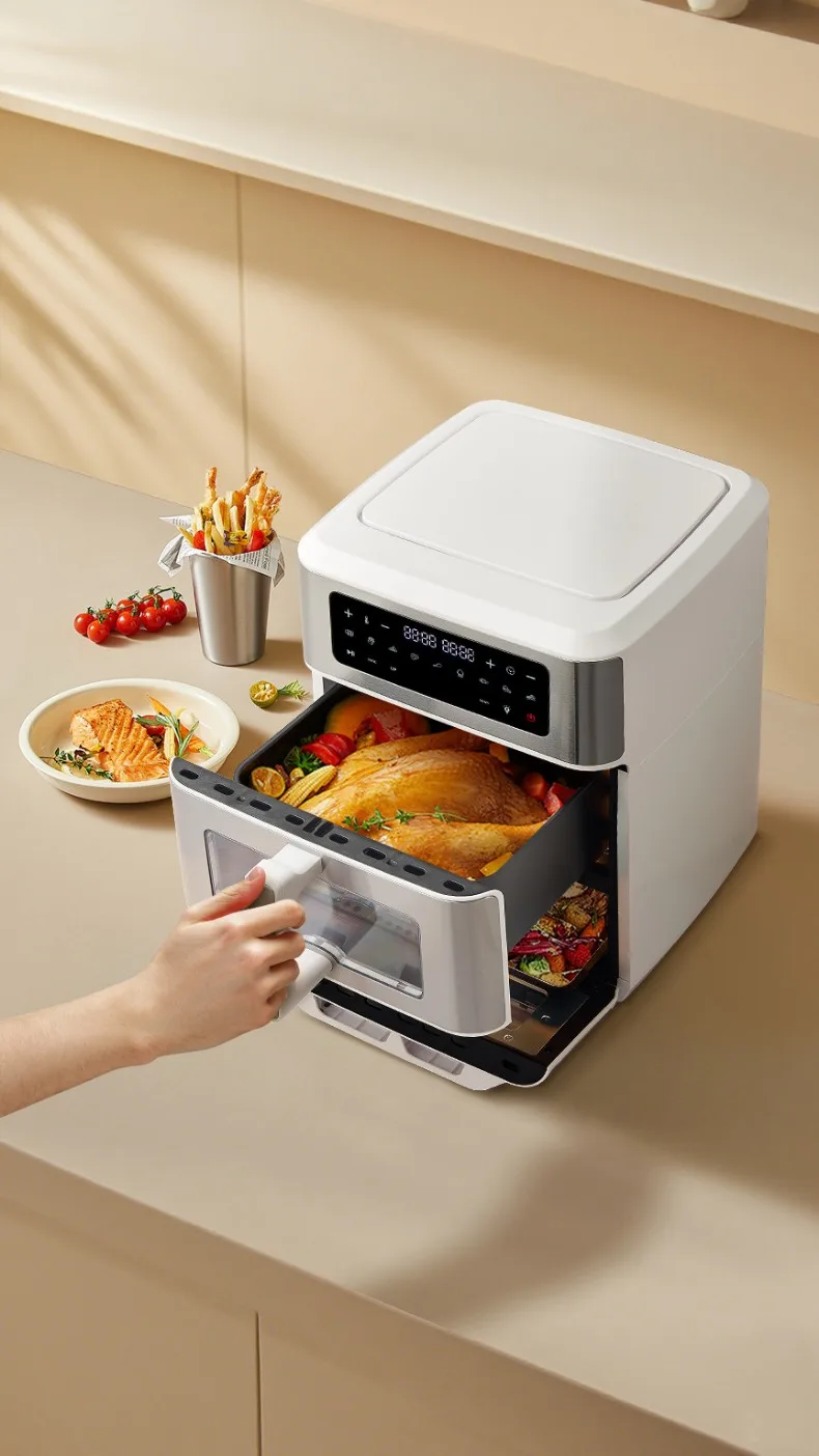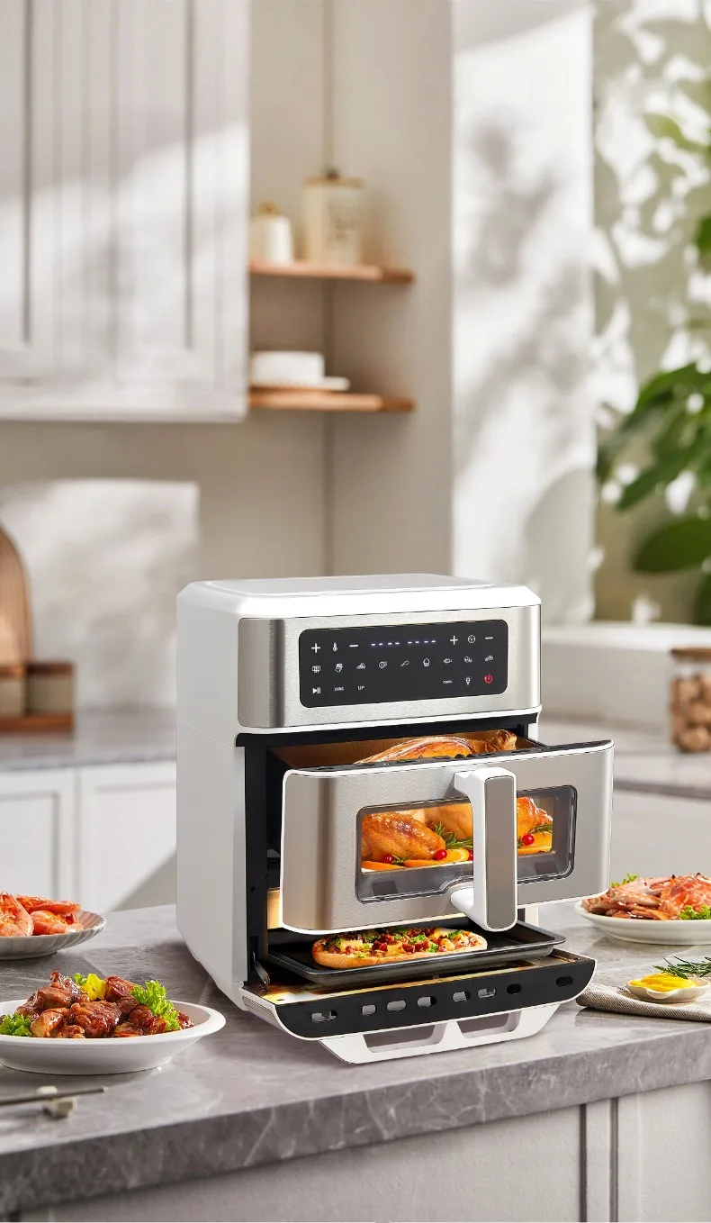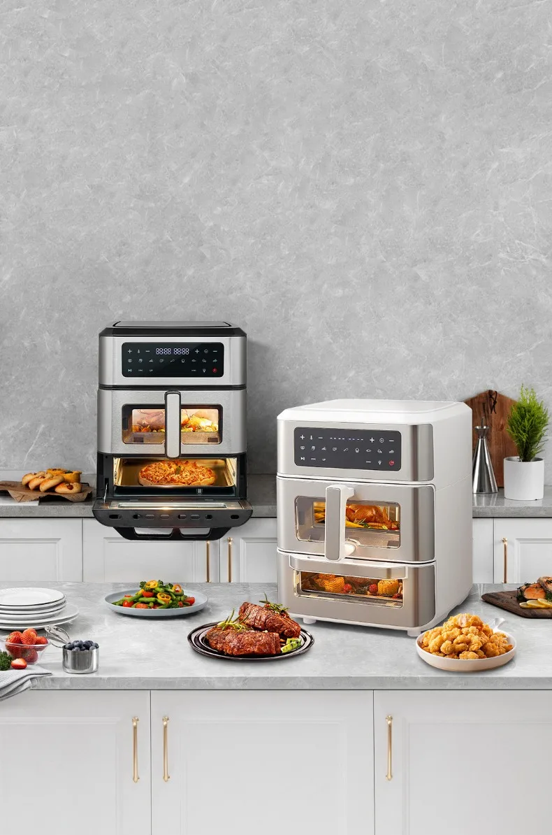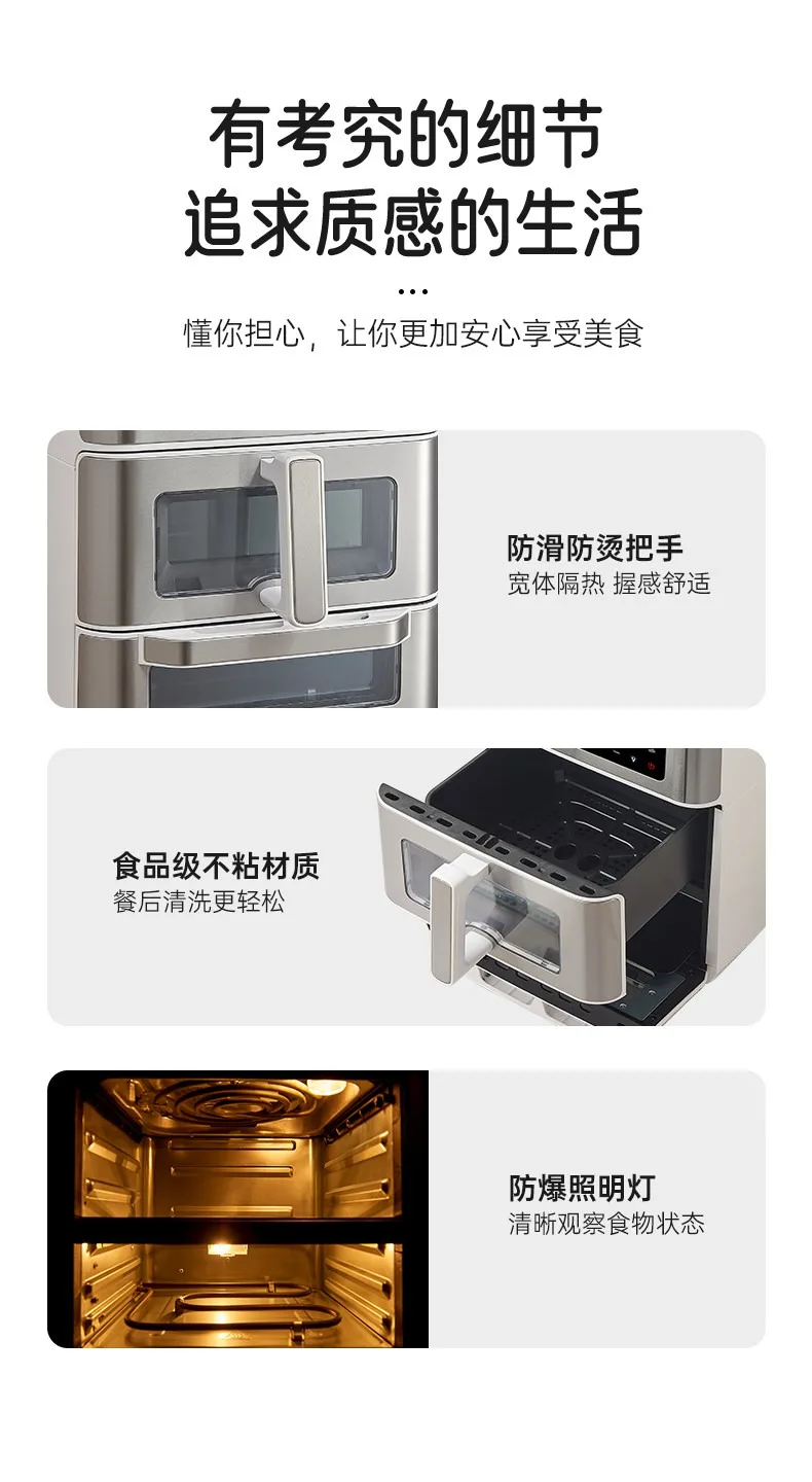 A Double-layer visual air fryer new three-dimensional double compartment multi-functional no-turning electric oven for home use
