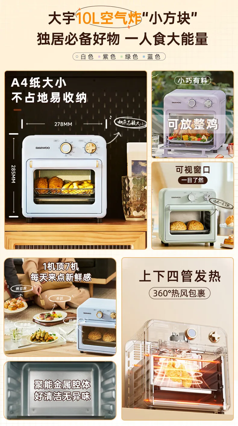 Air Frying Oven Household Desktop Mini Air Fryer Independent Temperature Control Electric Oven Hot Air Circulation 10L