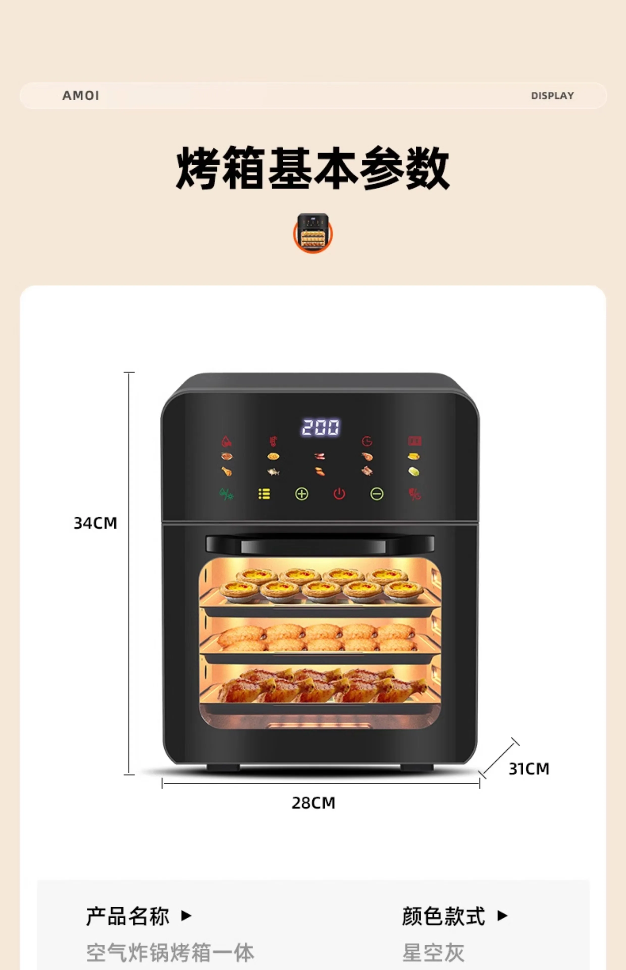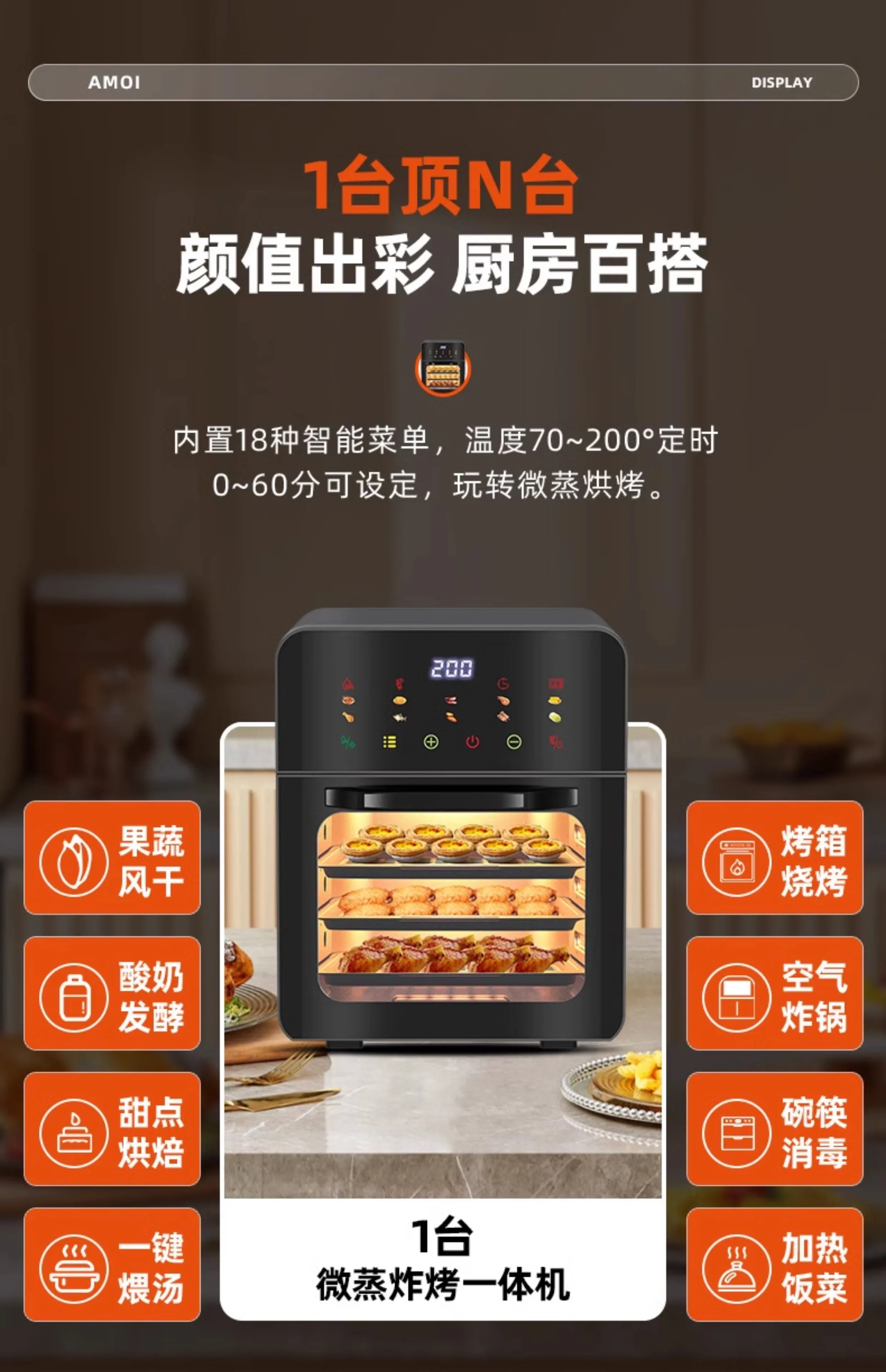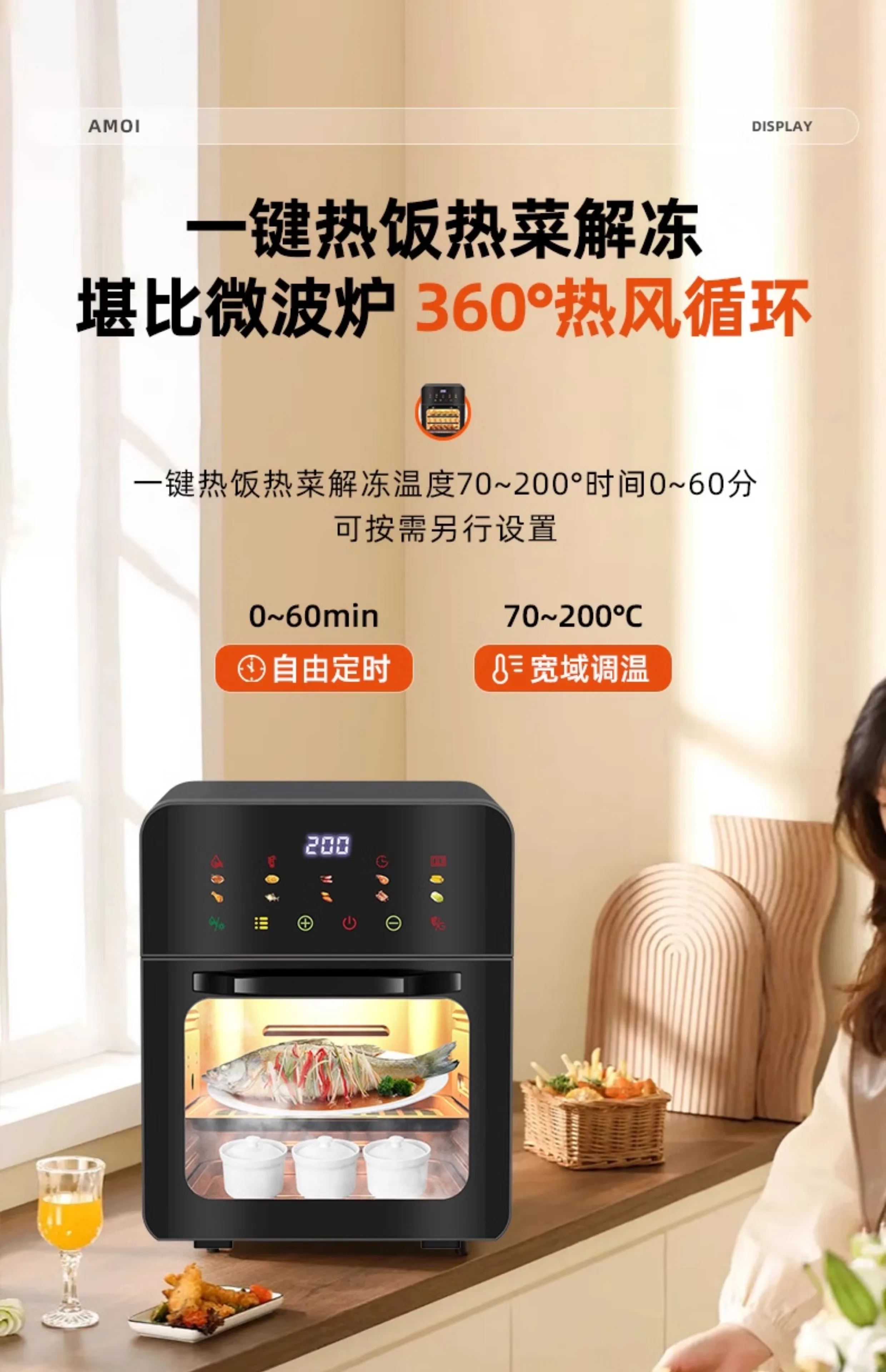 Amoi 220V 1350W 15L Air Fryer 2-in-1 Tabletop Electric Oven Multifunctional All-in-One
