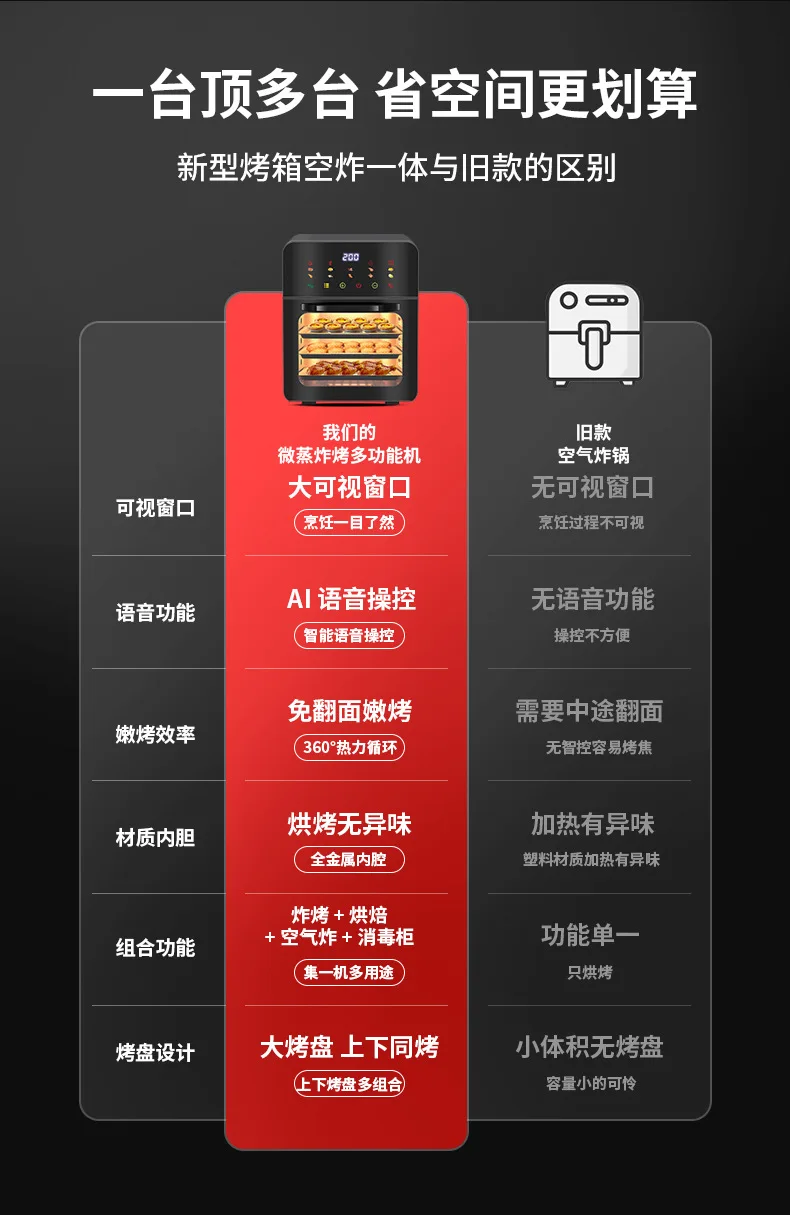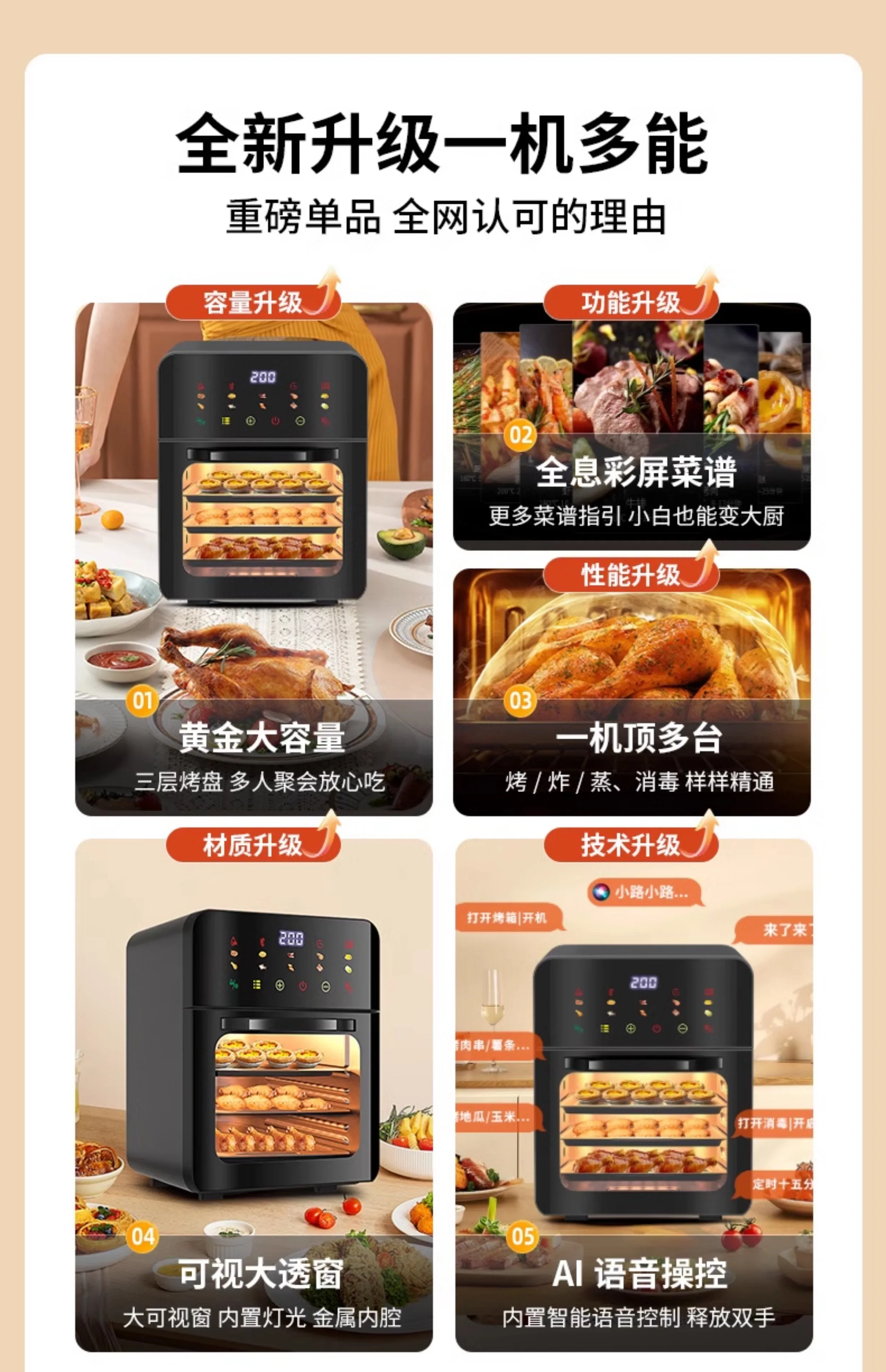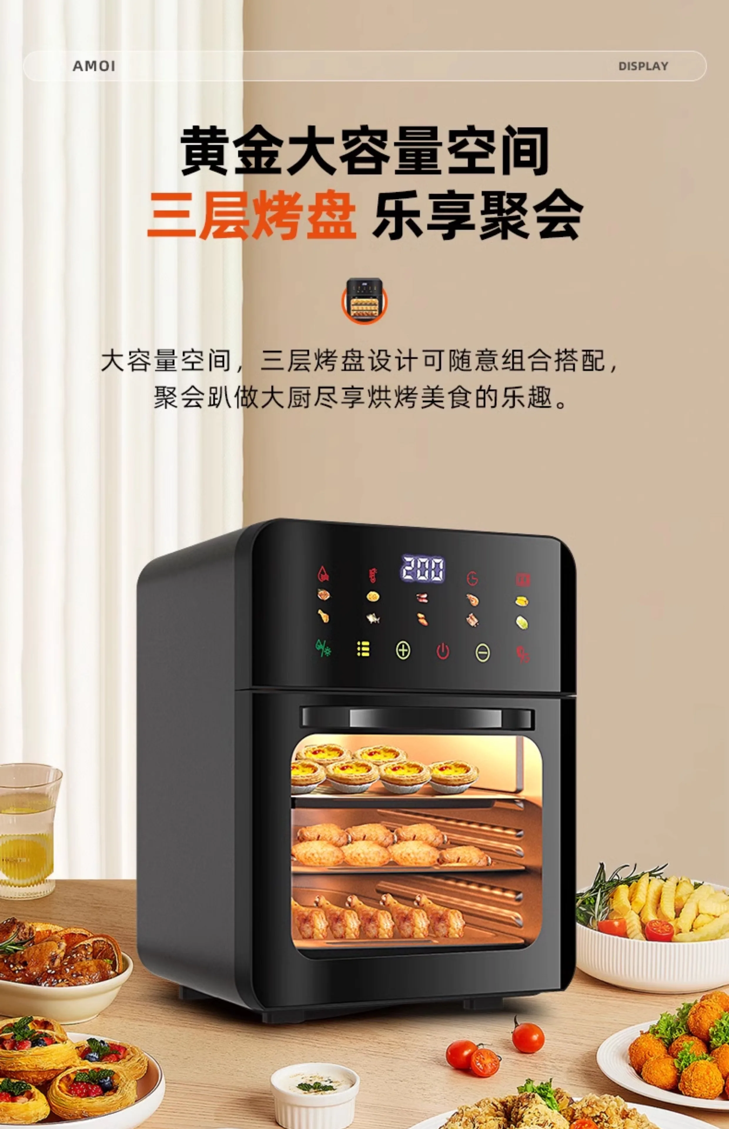 Amoi 220V 1350W 15L Air Fryer 2-in-1 Tabletop Electric Oven Multifunctional All-in-One