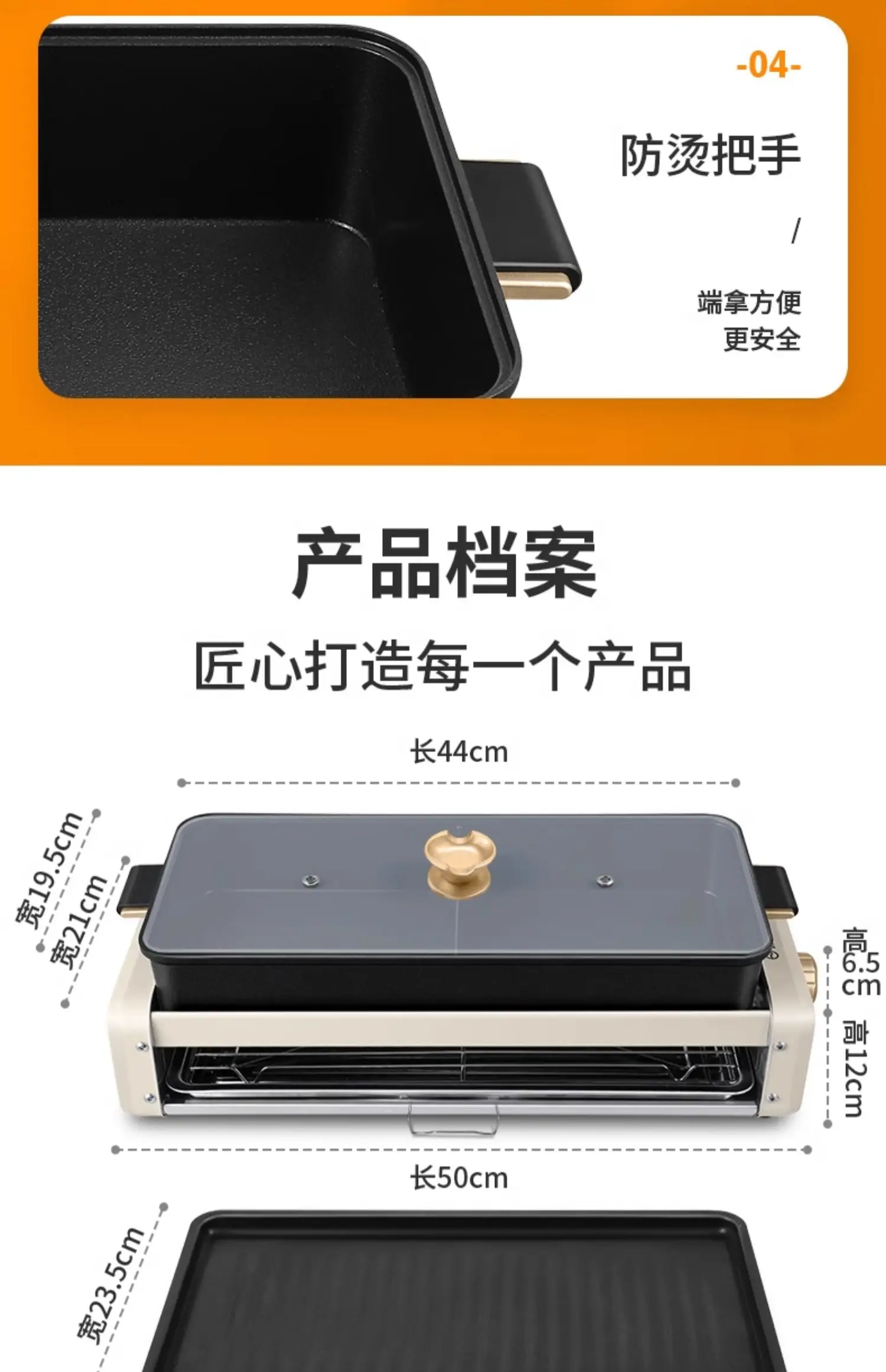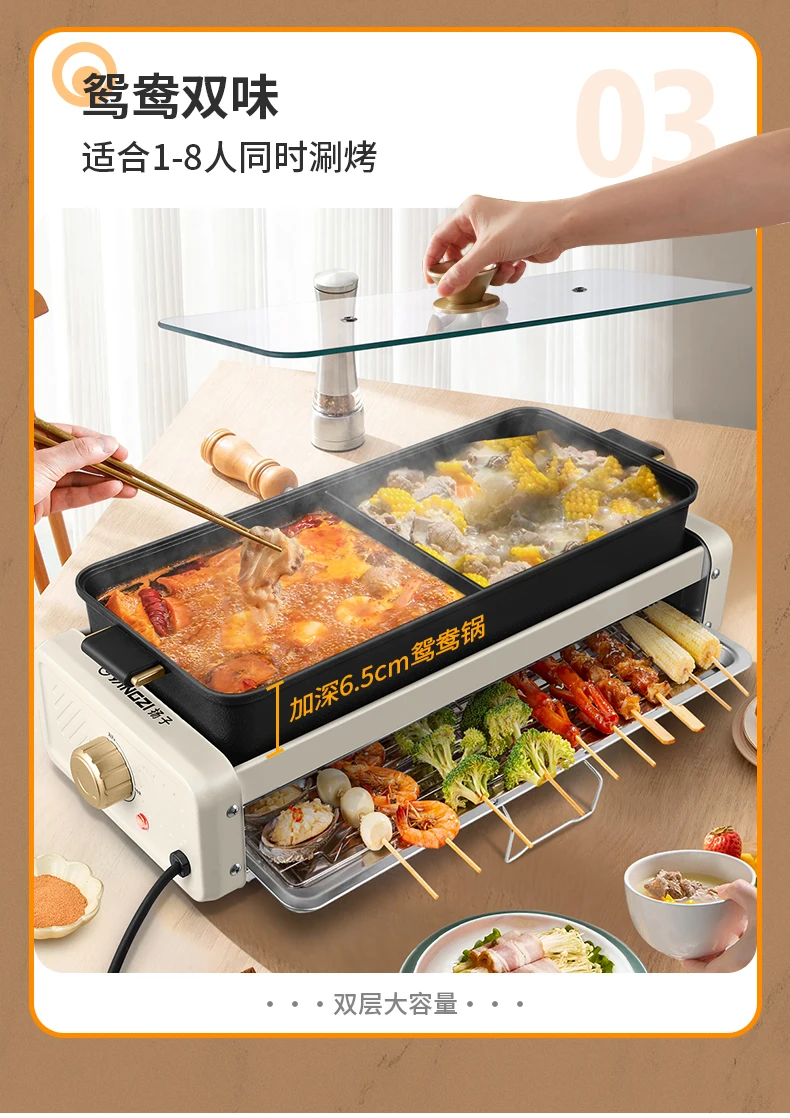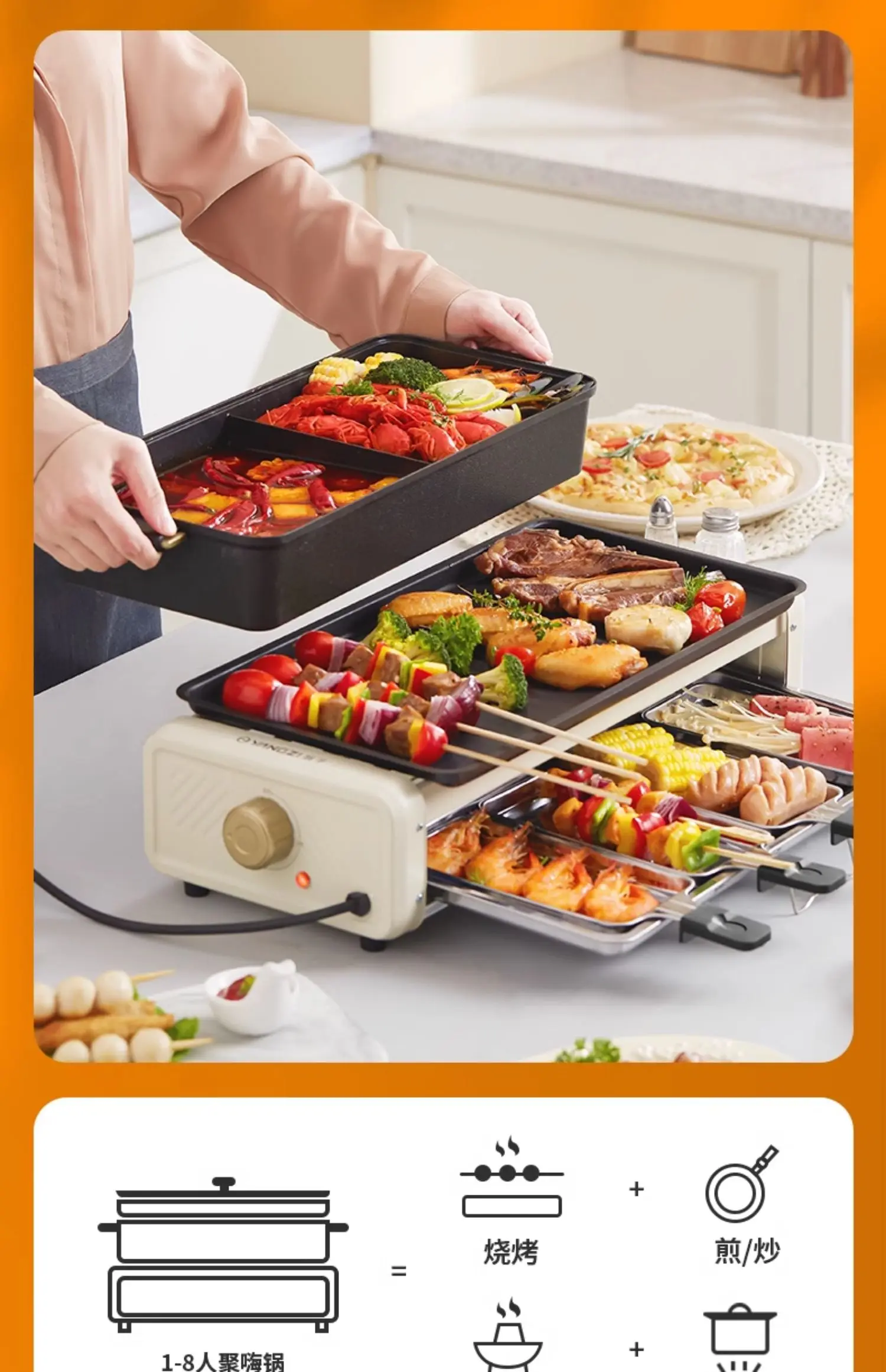 Electric barbecue grill household large-capacity electric hot pot multi-functional indoor smokeless skewer machine