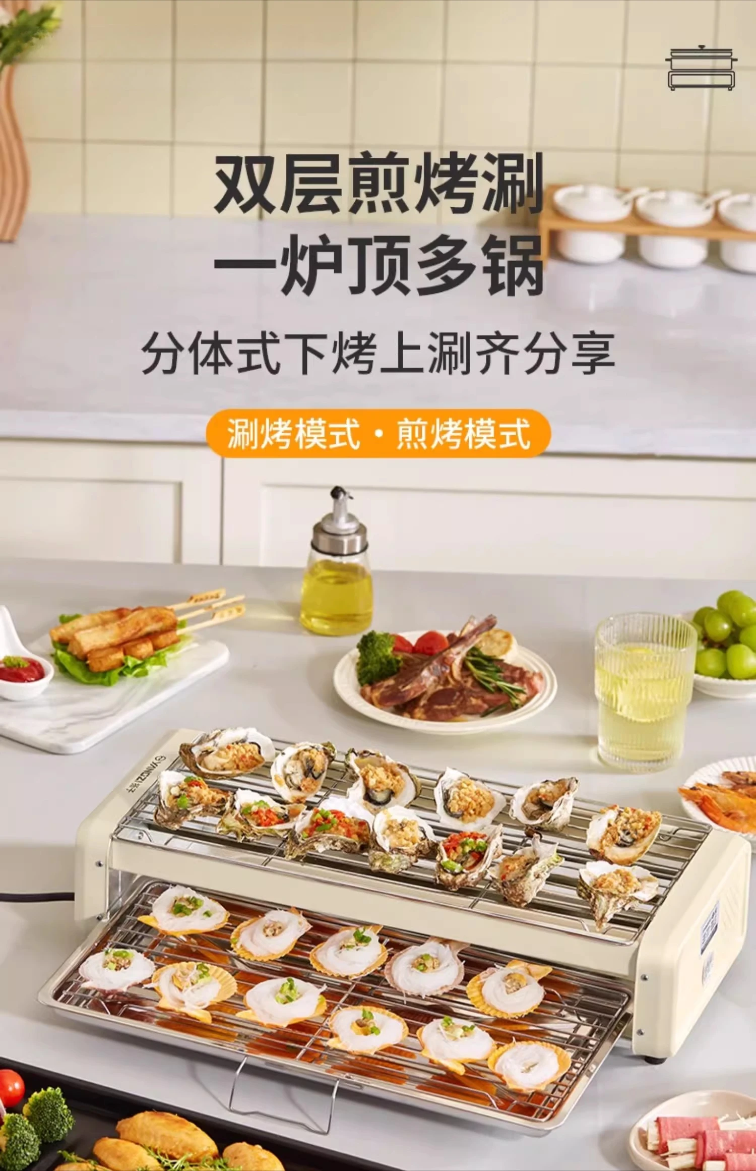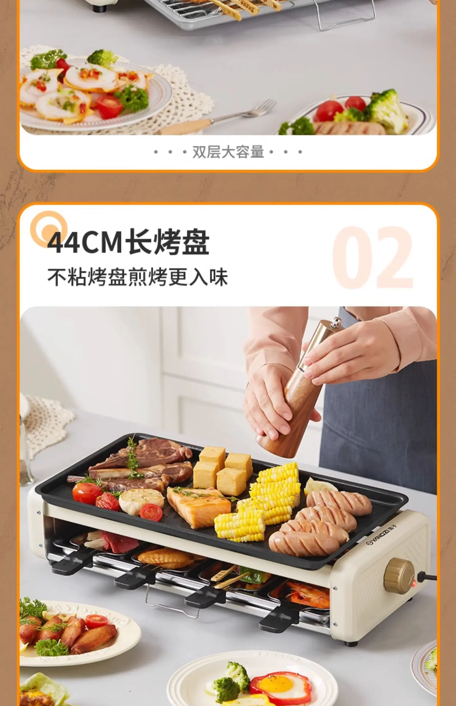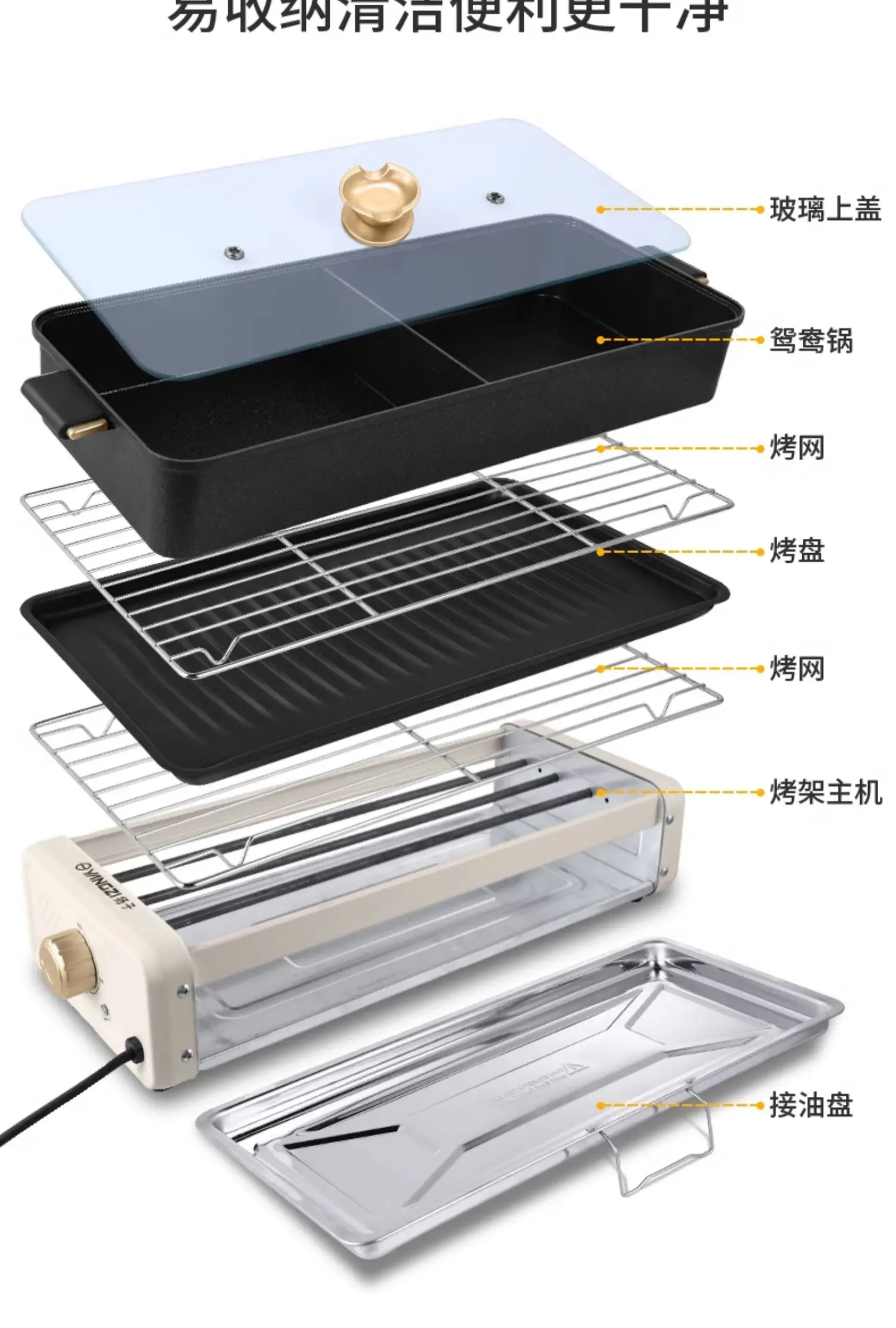 Electric barbecue grill household large-capacity electric hot pot multi-functional indoor smokeless skewer machine