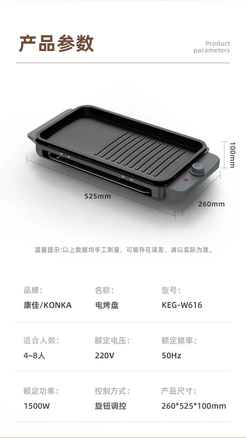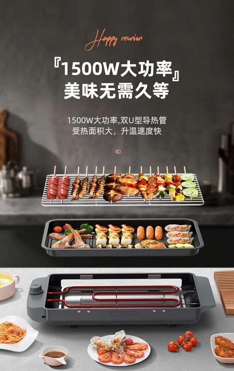 KONKA Electric Baking Oven Electric Baking Plate Household Smokeless Barbecue Frame Electric Baking Oven Iron Plate Barbecue String Machine Barbecue Oven KEG-W618