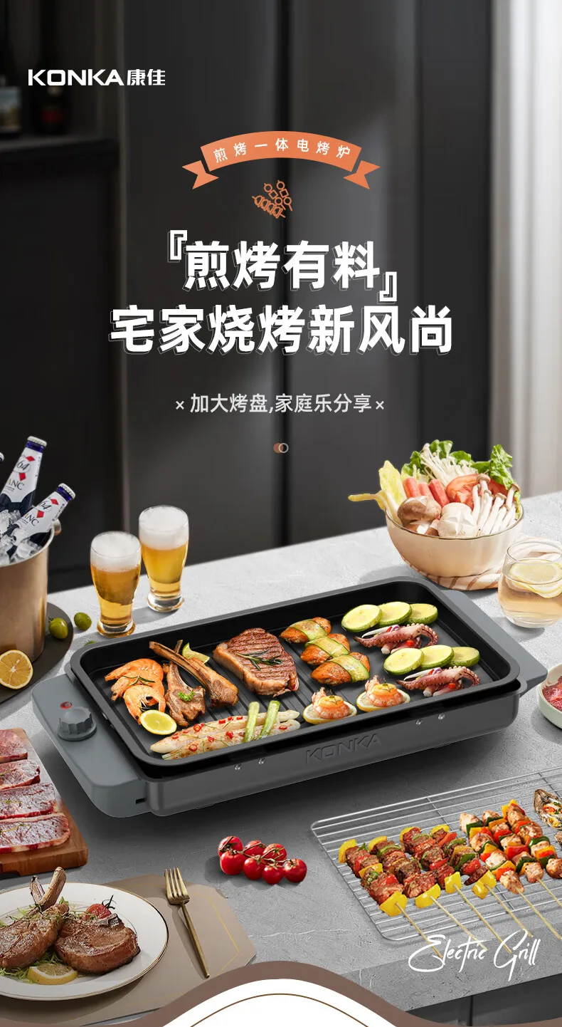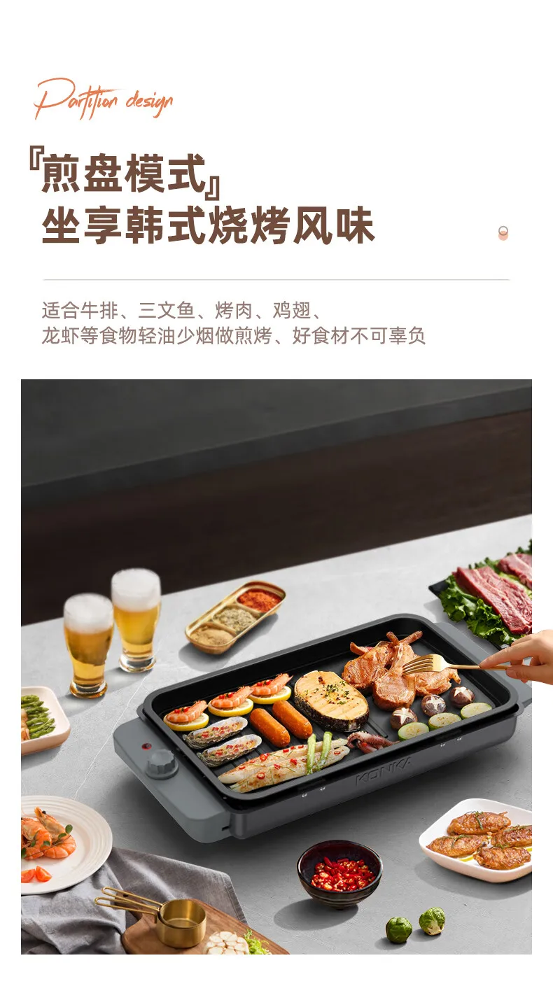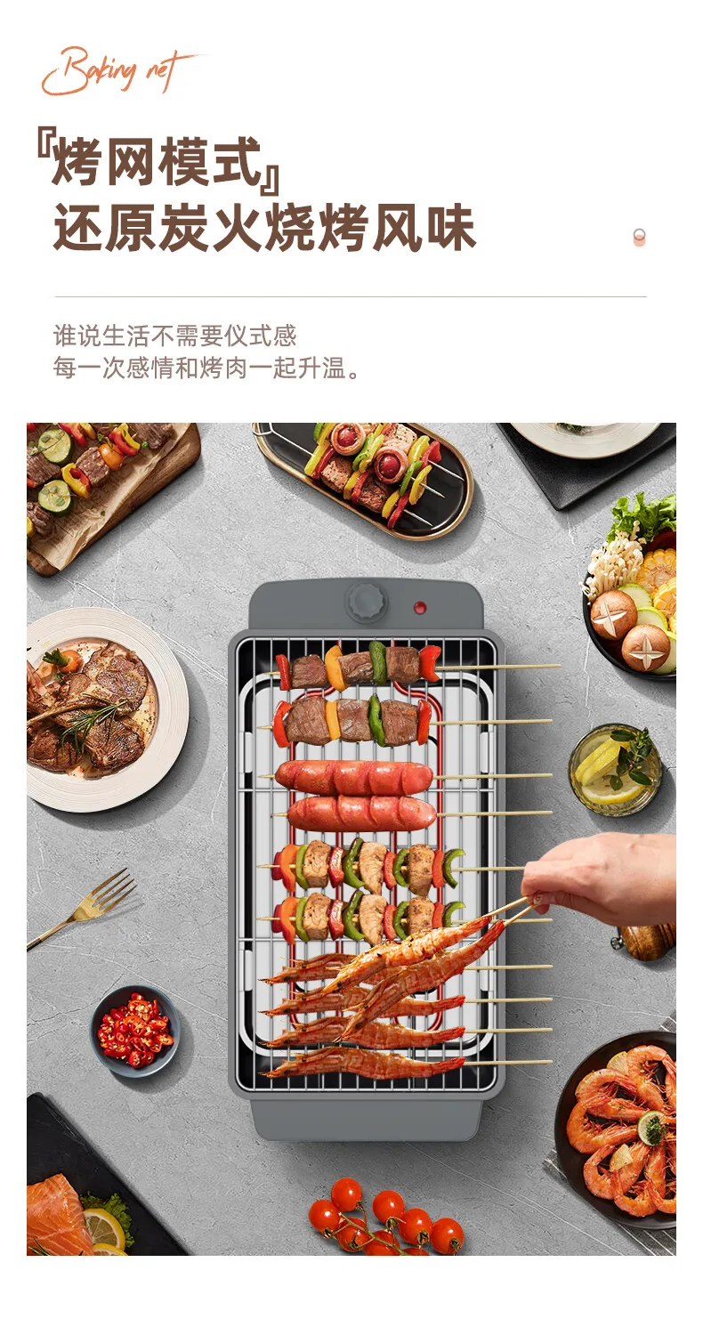 KONKA Electric Oven Smokeless BBQ Grill with Oven Tray Household Iron Plate BBQ Skewer Grill 220V
