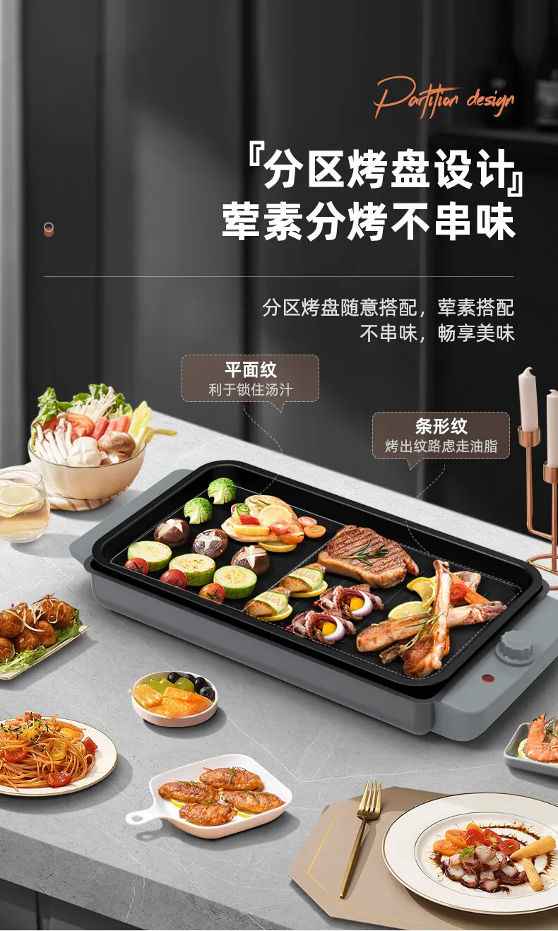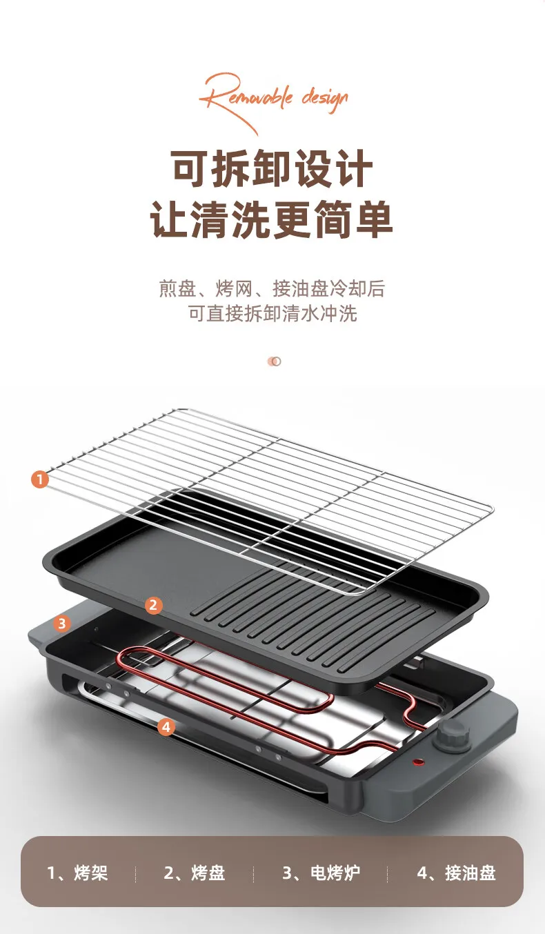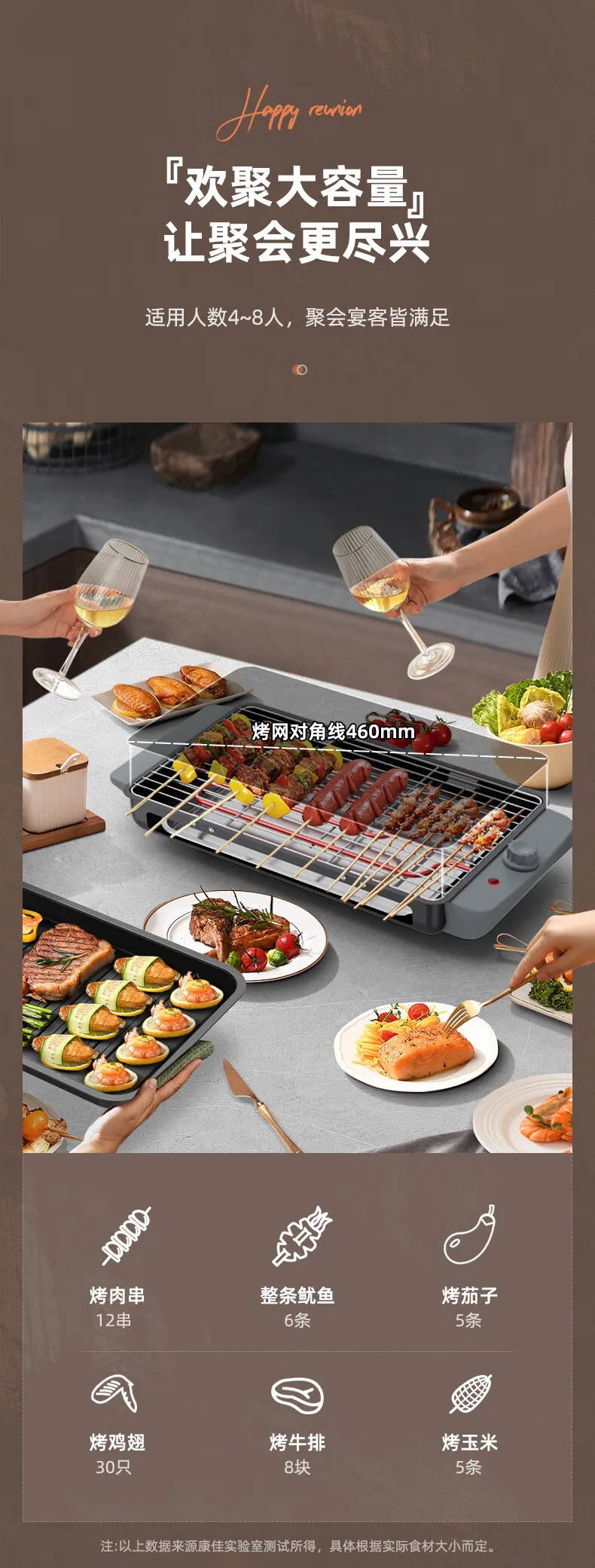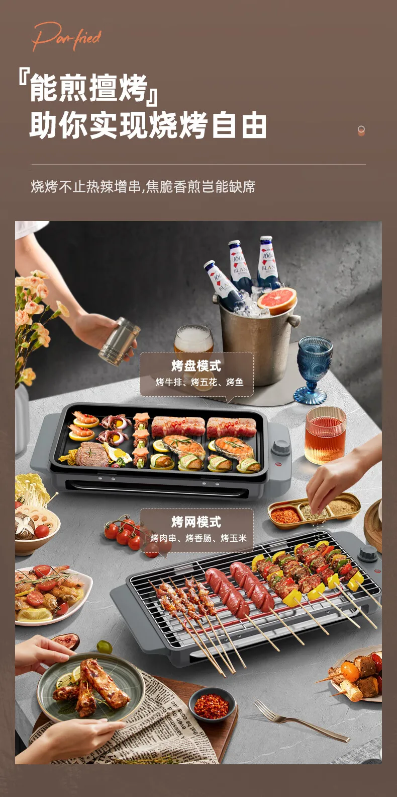 KONKA Electric Oven Smokeless BBQ Grill with Oven Tray Household Iron Plate BBQ Skewer Grill 220V