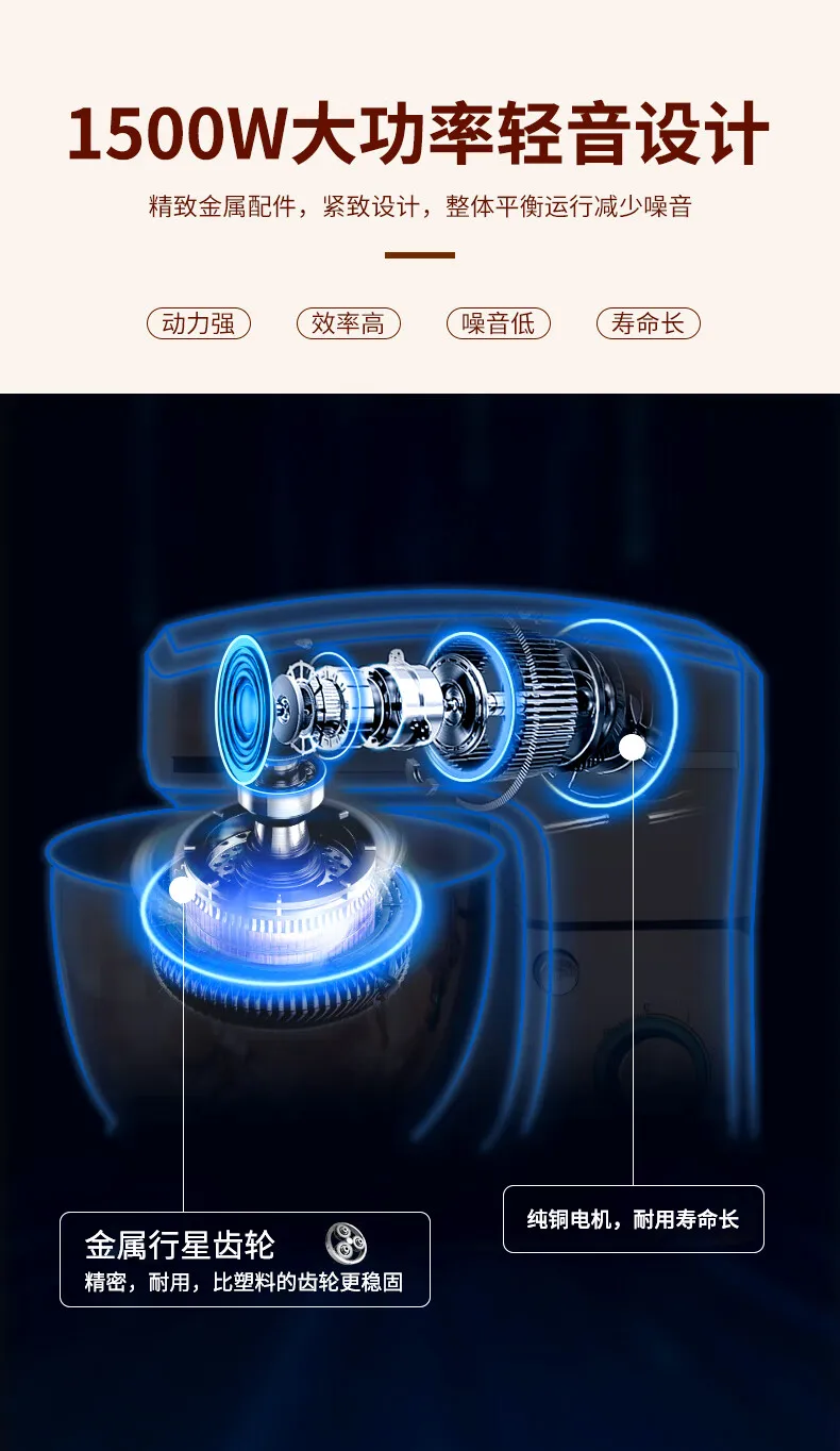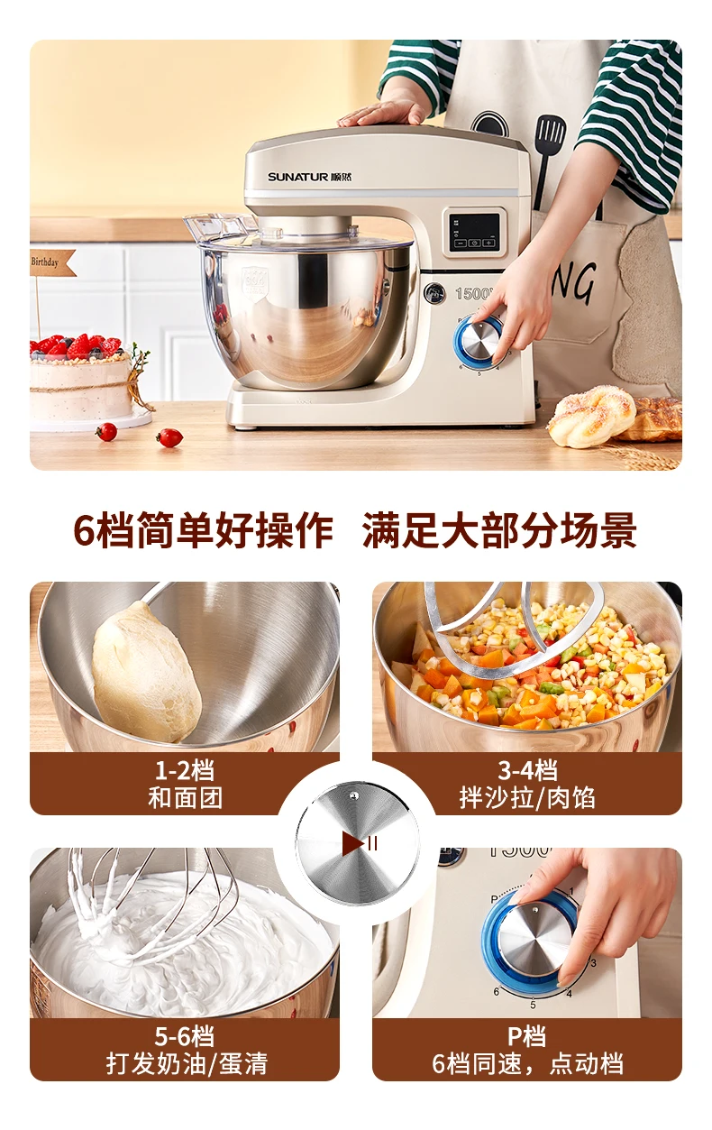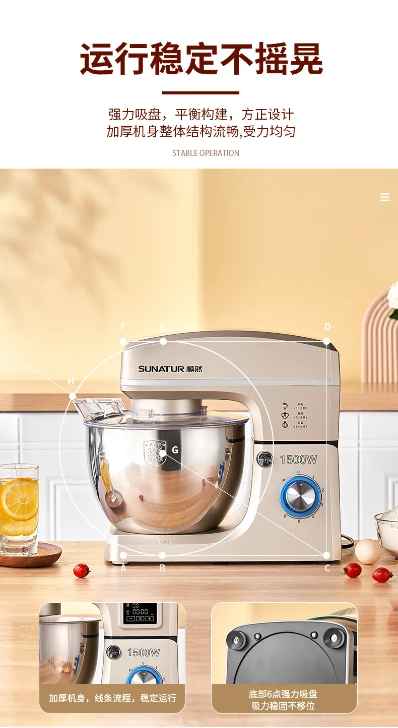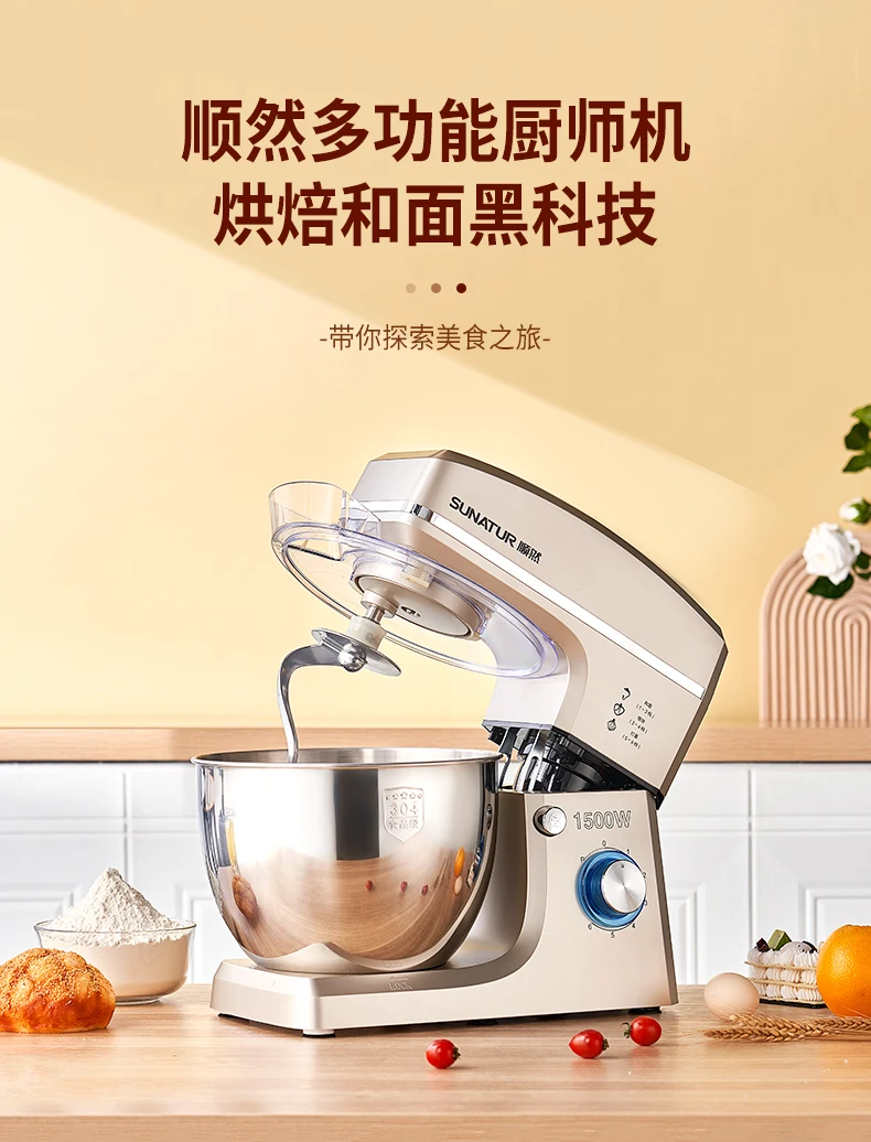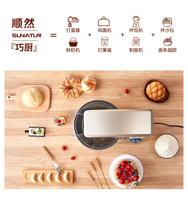 - Household high-capacity chef machine, fully automatic and noodle awakening machine, multifunctional commercial high-power egg beater, cream cooking machine, 8 liters