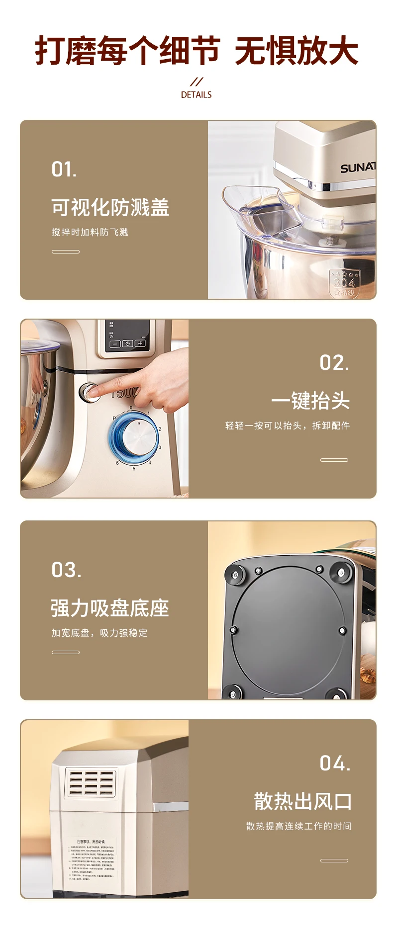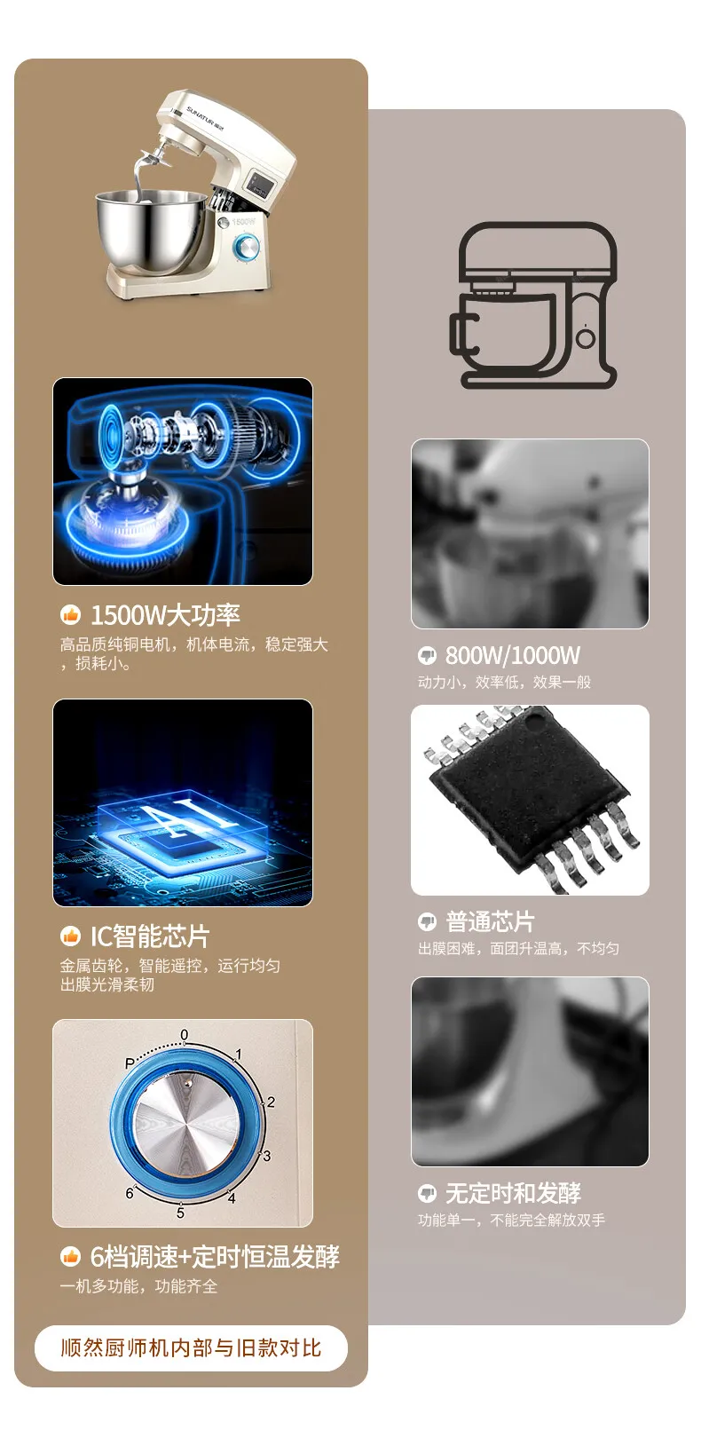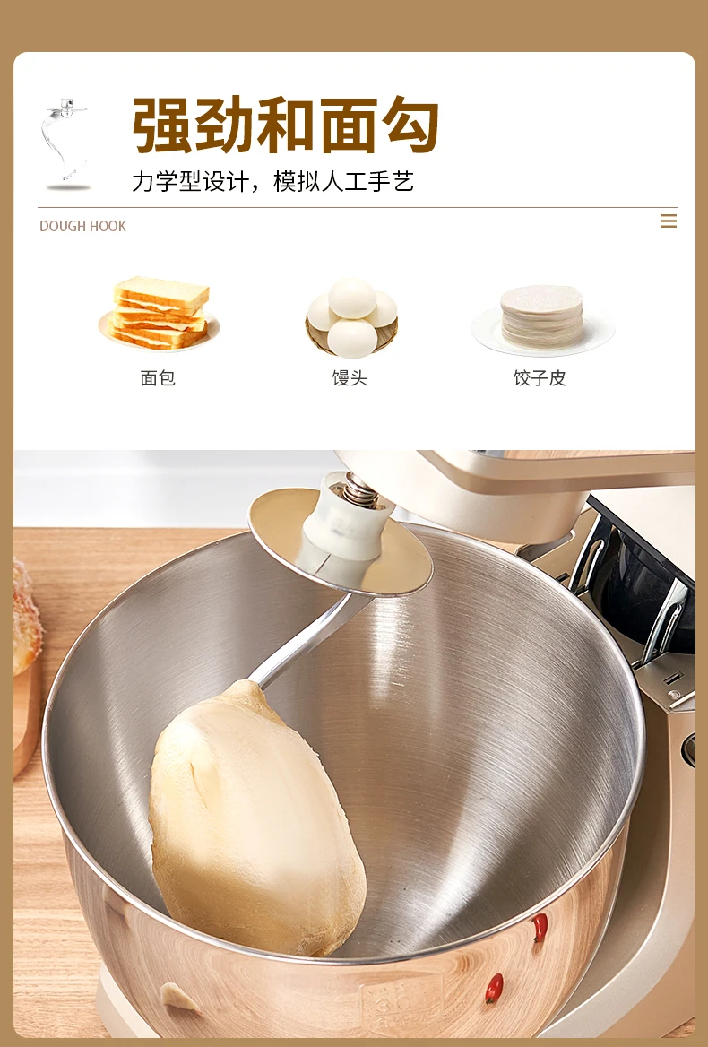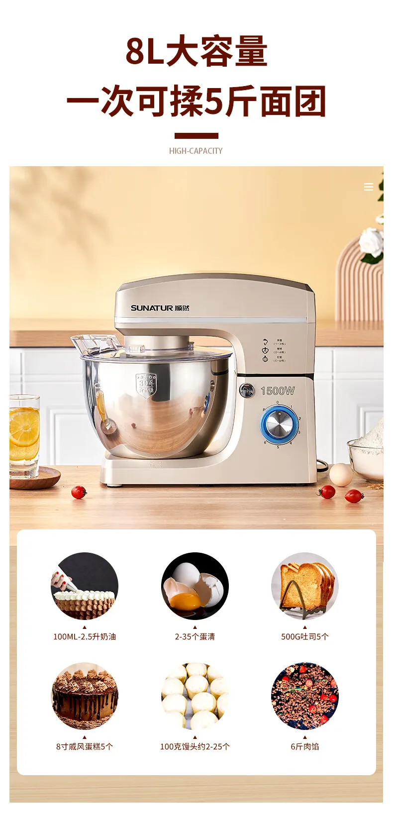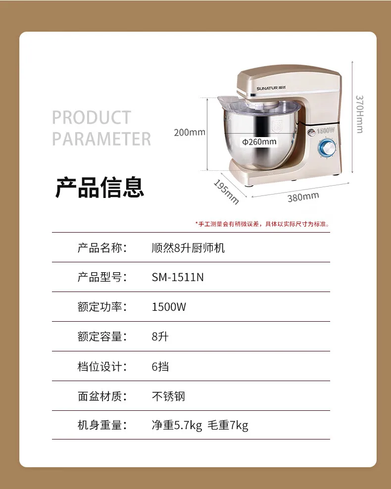 - Household high-capacity chef machine, fully automatic and noodle awakening machine, multifunctional commercial high-power egg beater, cream cooking machine, 8 liters