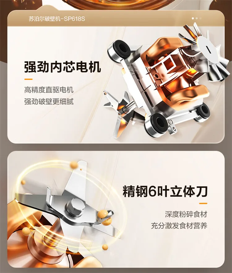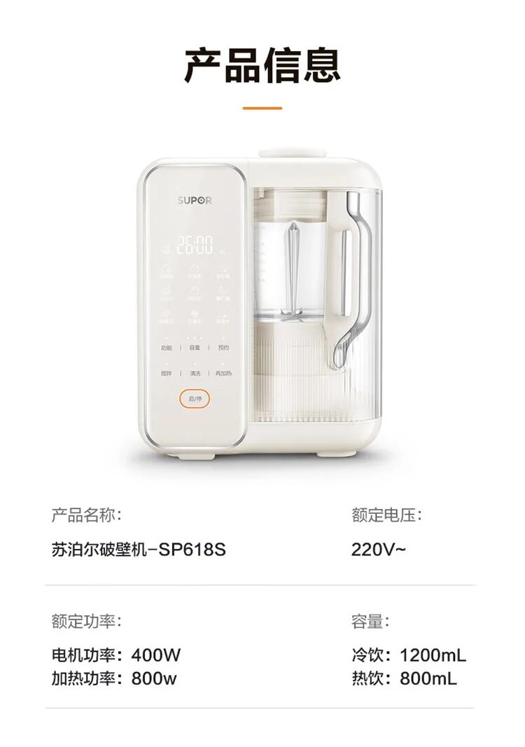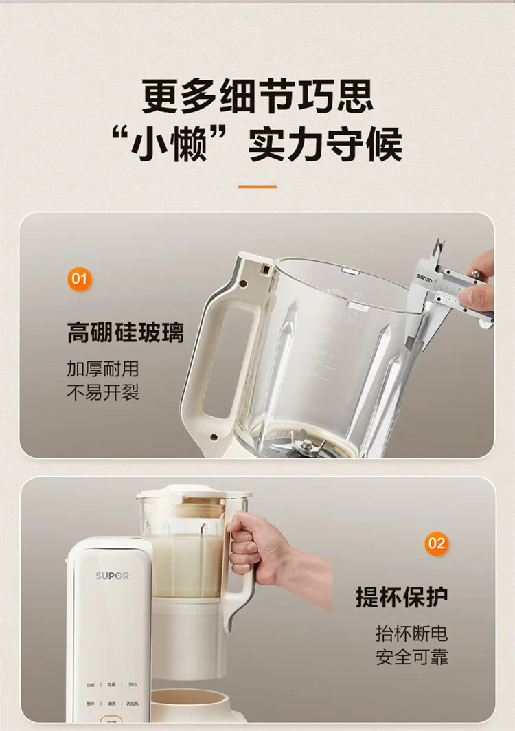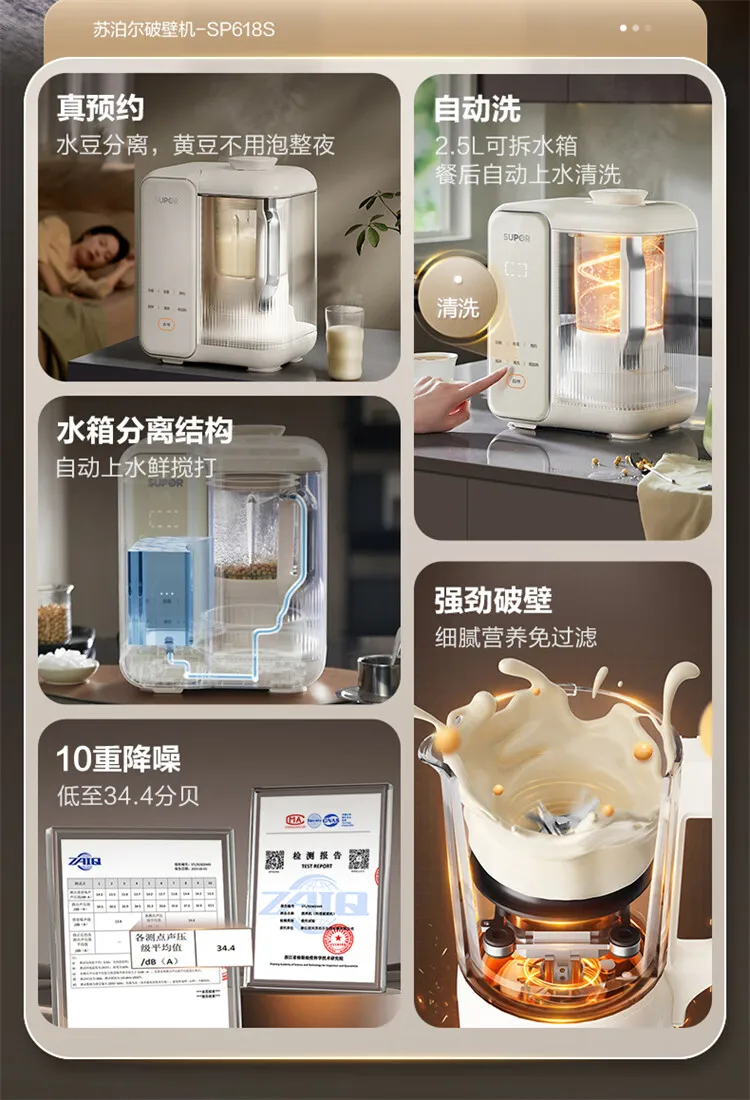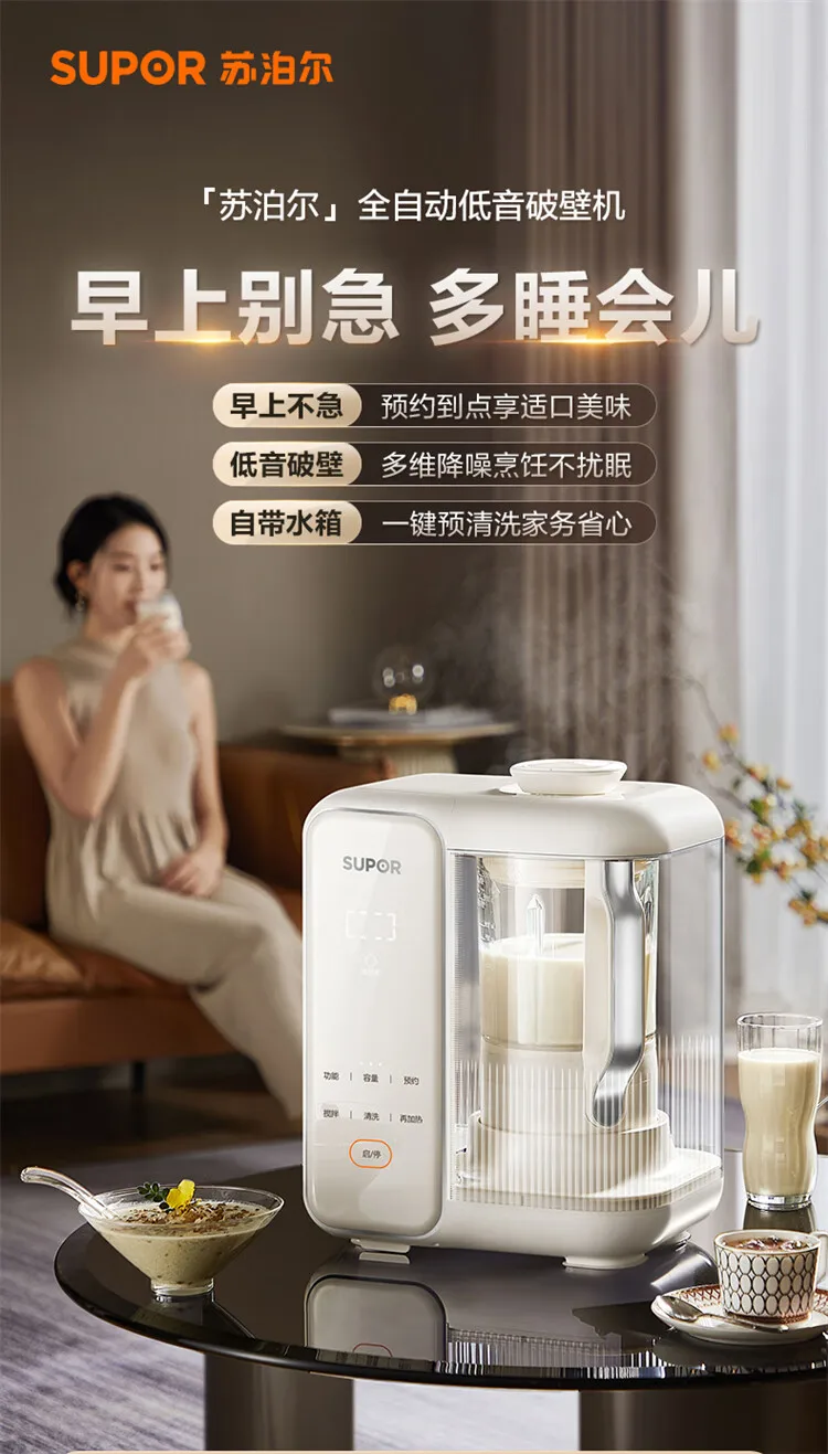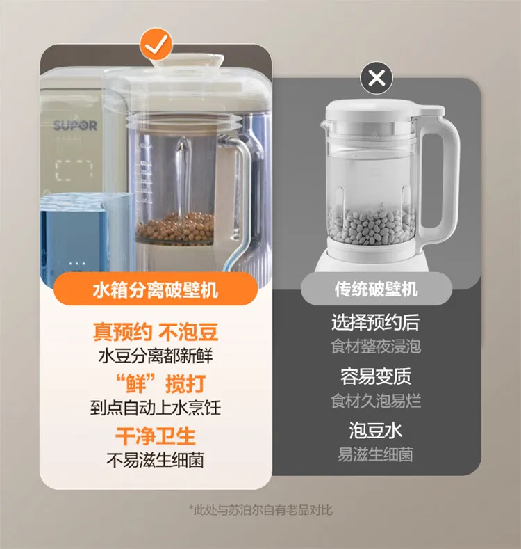 SUPOR Detachable Water Tank Blender Soy Milk Maker Low Noise Fully Automatic No Cook No Filter Multi Grain Food Processor
