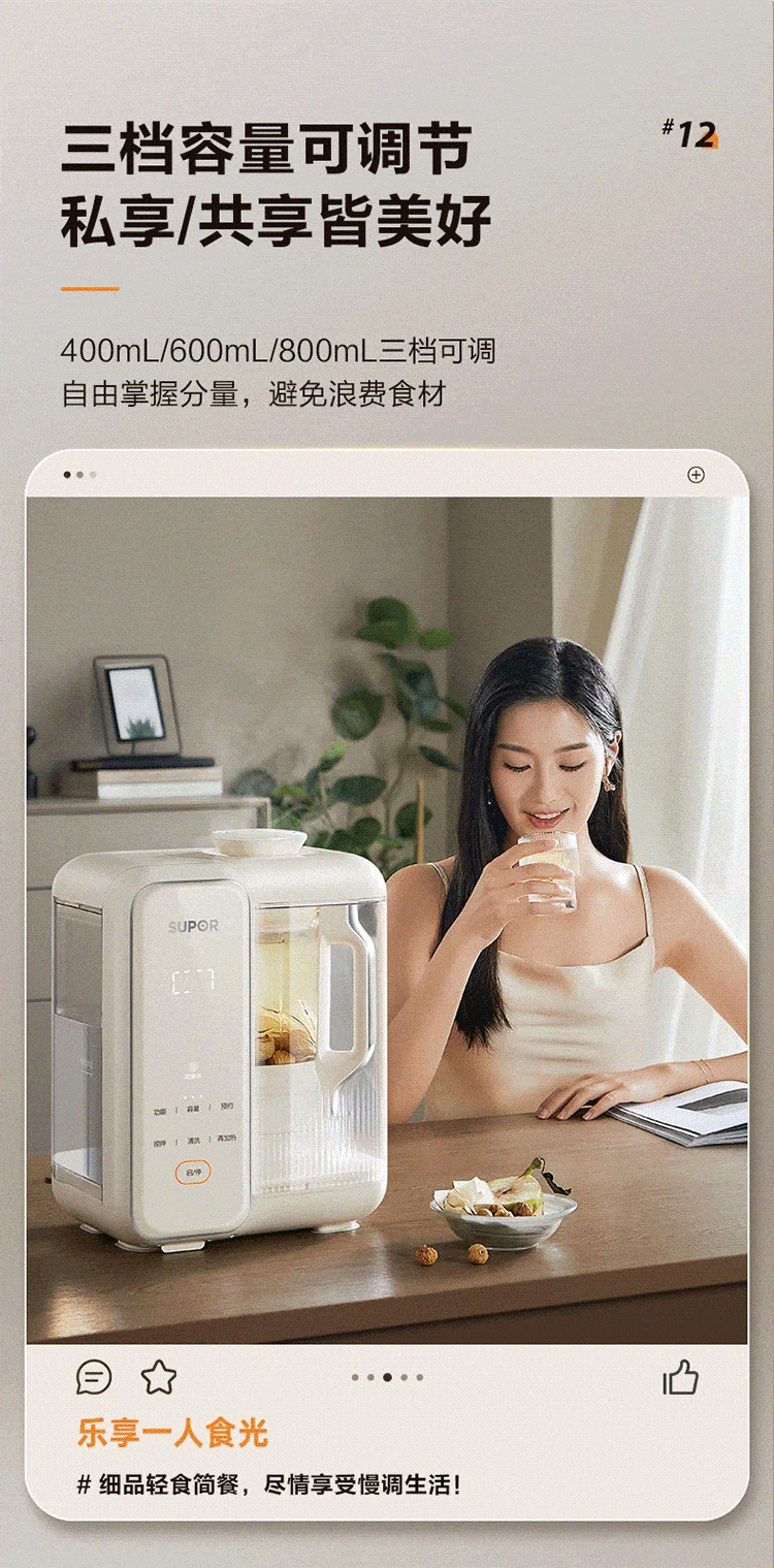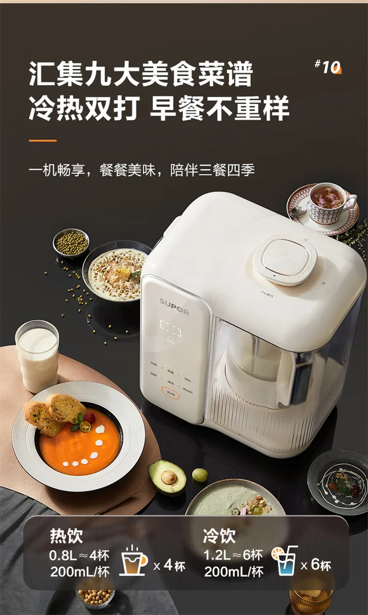 SUPOR 1.2L Detachable Water Tank Blender Soy Milk Maker Low Noise Fully Automatic No Cook No Filter Multi Grain Food Processor